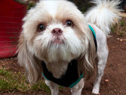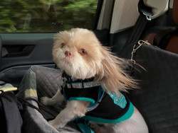 Chicken Nugget is a rescue he was in rough shape. Now he travels with us, greets people and animals brining smiles to all he meets.