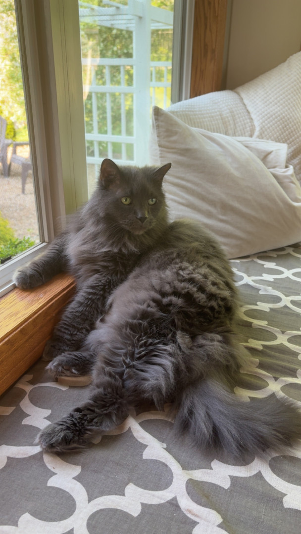Chico should be America’s favorite cat because simply looking at him is enough to make your day brighter. When it’s time to curl up on the couch with a cozy blanket, he’s the perfect fluffy addition—warm, soft, and irresistibly cute. Of course, affection must be given strictly on his terms (too much attention is a bold move), but that just adds to his charm lol. With his bright eyes, and endlessly fluffy fur, Chico’s cuteness is irresistible!