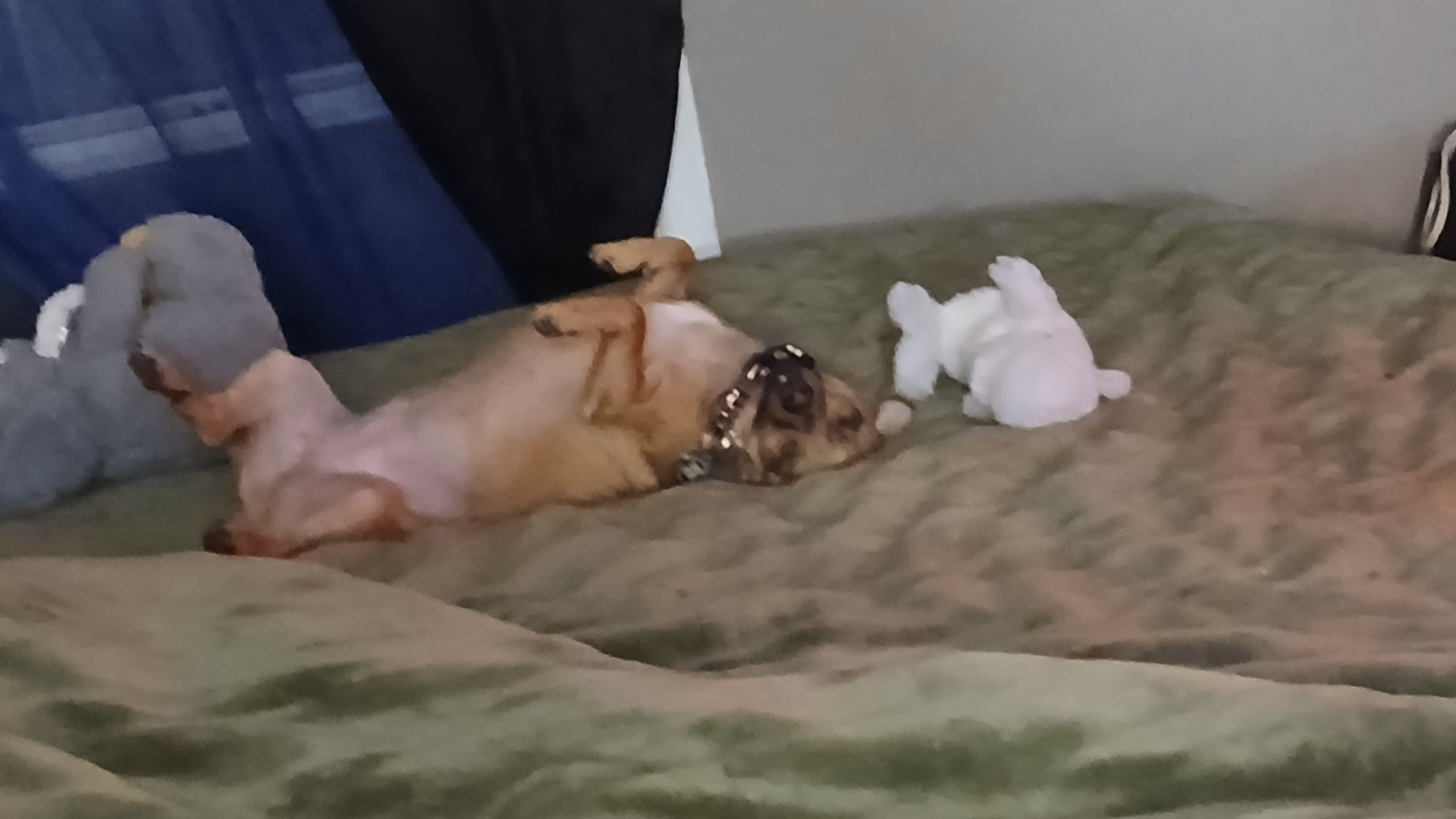Chico is a playful but shy little guy. He loves his stuffed animals and loves to eat (everything). He is our little "porker".