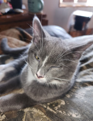 When my eyes open, even with no movement he presents himself on my chest. And reminding me when its soft food time. Lol