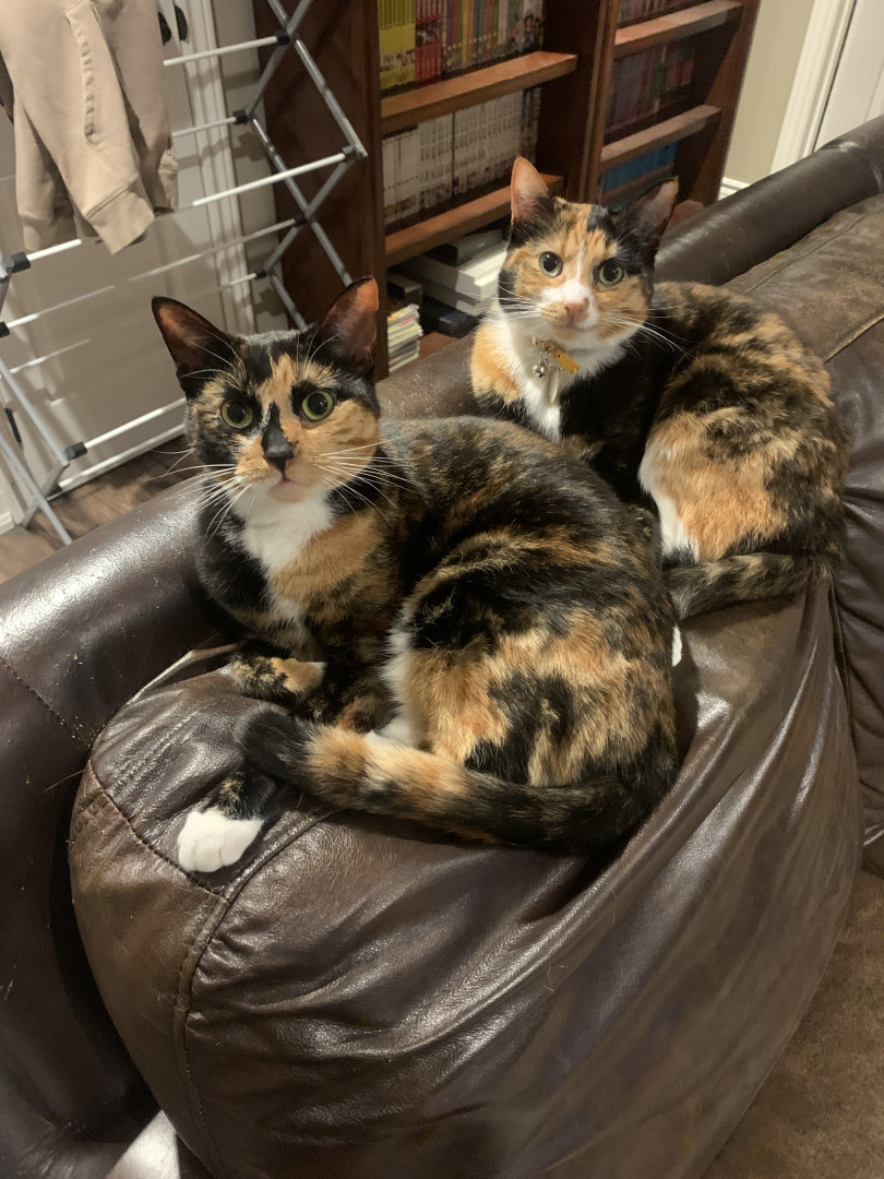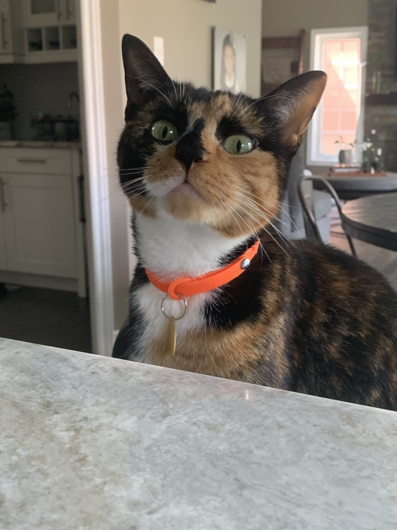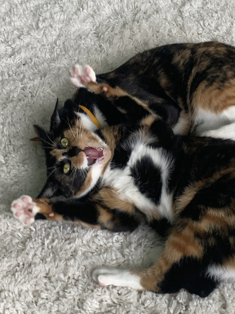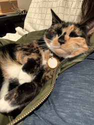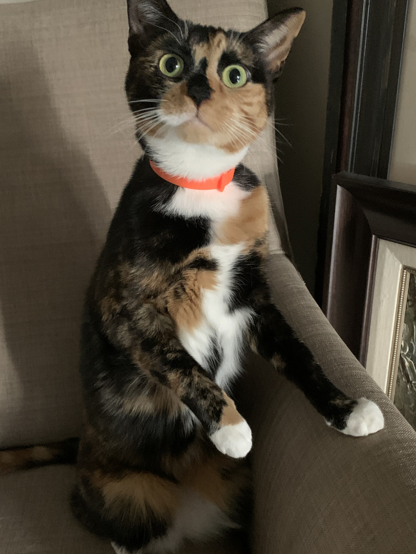 Chie is a very lovable and food motivated calico. She likes to cuddle up with me at night and act as my alarm in the morning by meowing (: