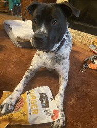 Chief is a rescue dog, he loves walks, eating. & attention He loves treats, errands. & massages. Chief loves to watch Tv & cuddle.