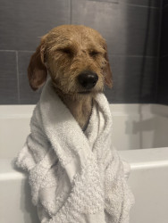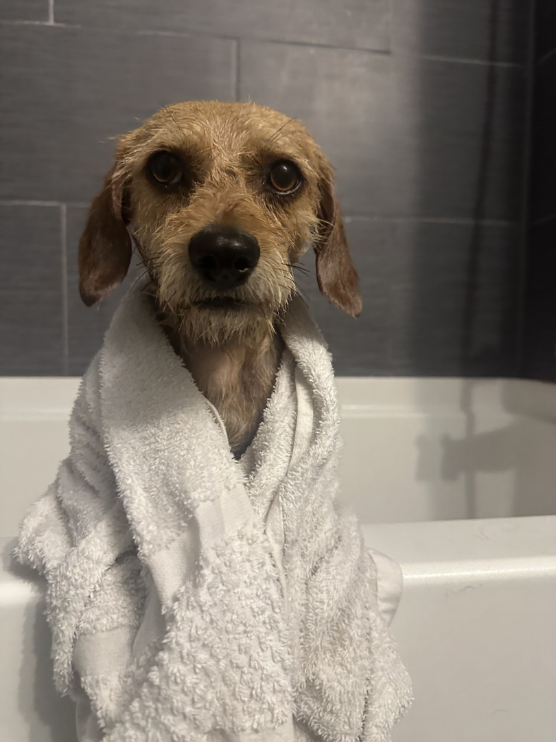 He’s outgoing spunky and loves to go on walks and play fetch! Not so fond of bath days though!! Hahaha 😝