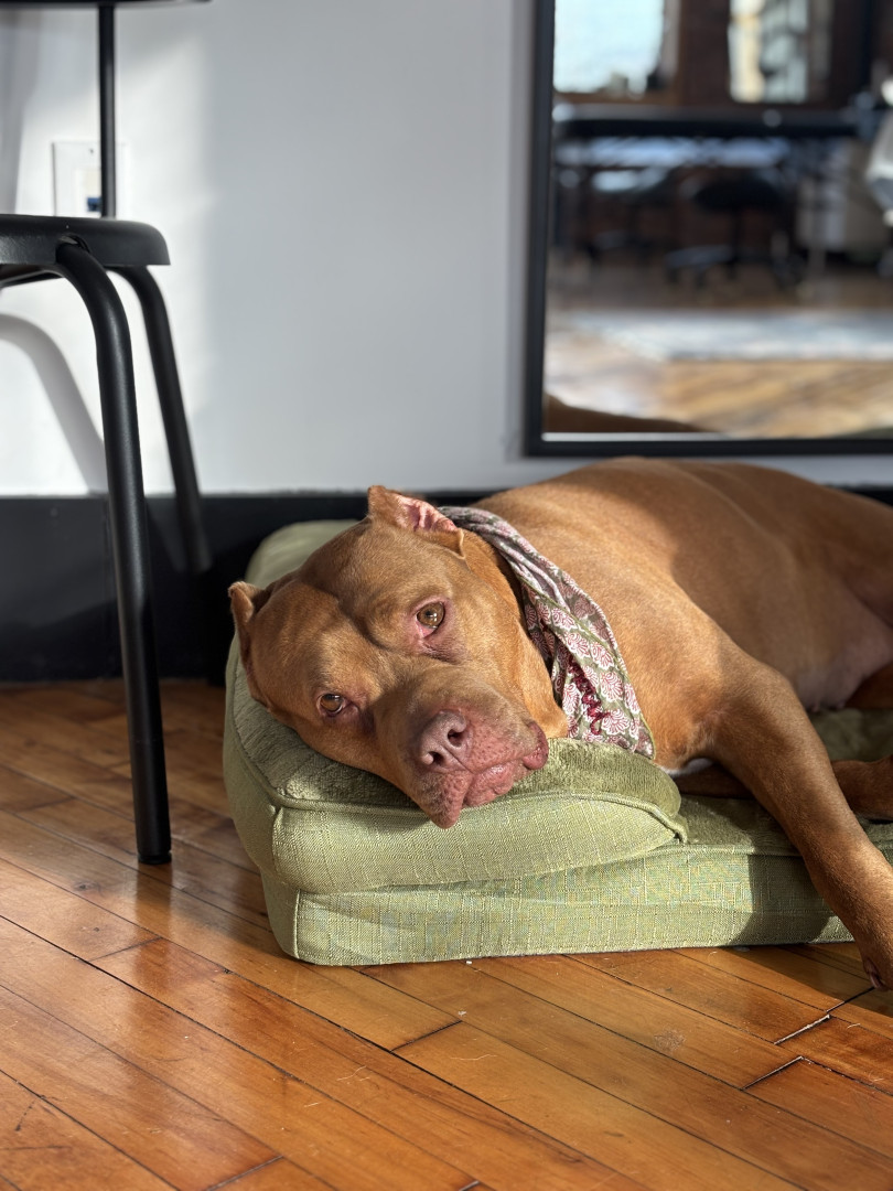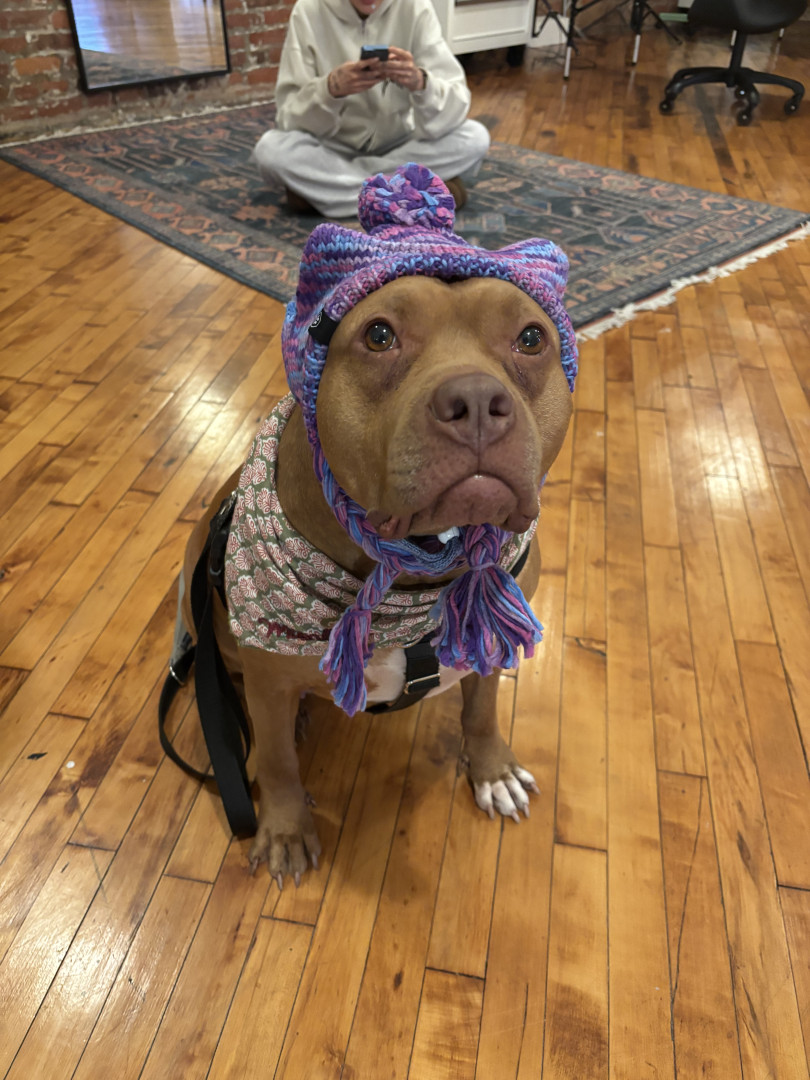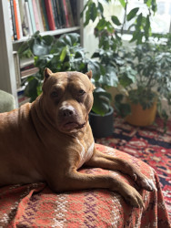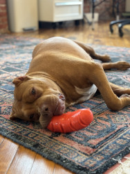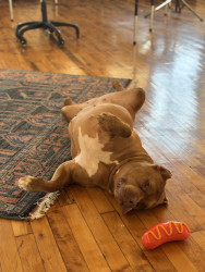 Chips is a sweet, gentle potato that loves nothing more than her toys, napping and pets. She loves babies, car rides, and peanut butter.