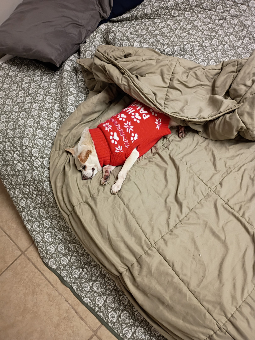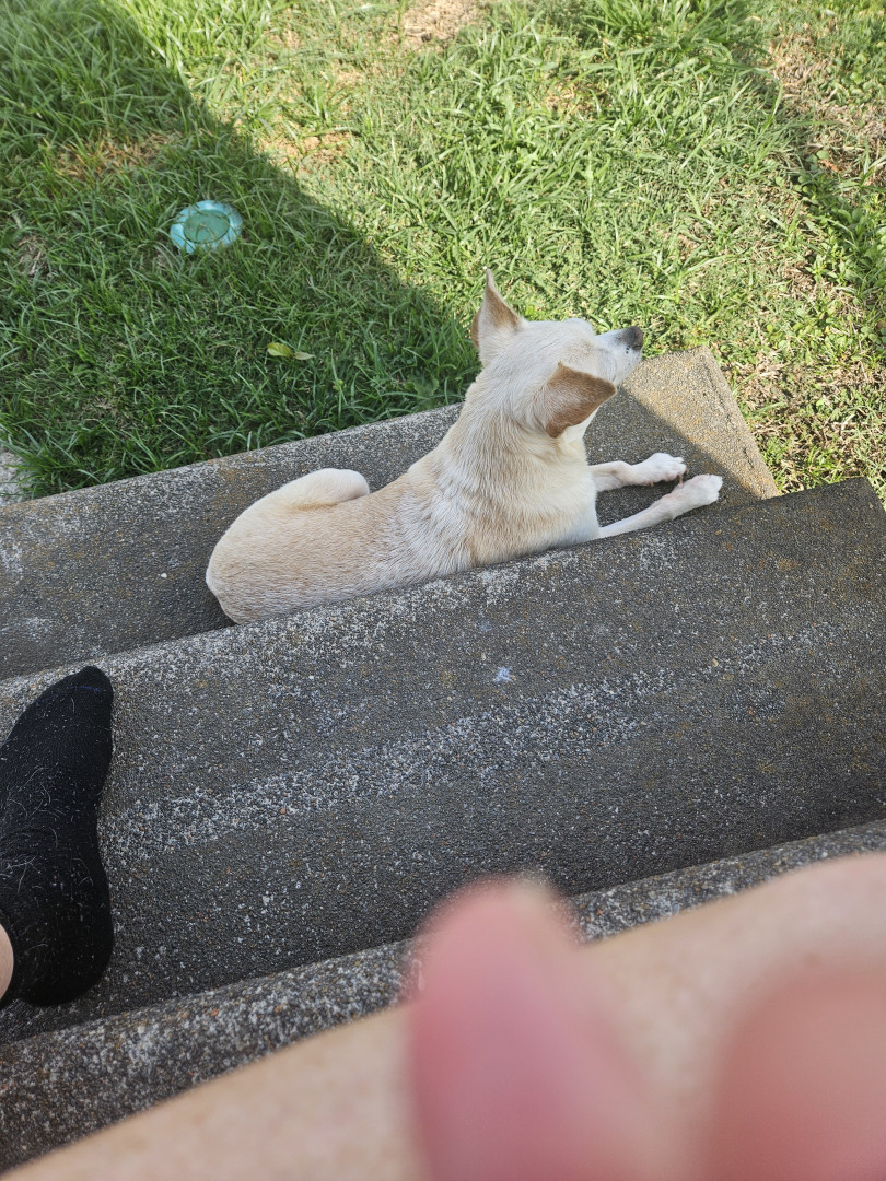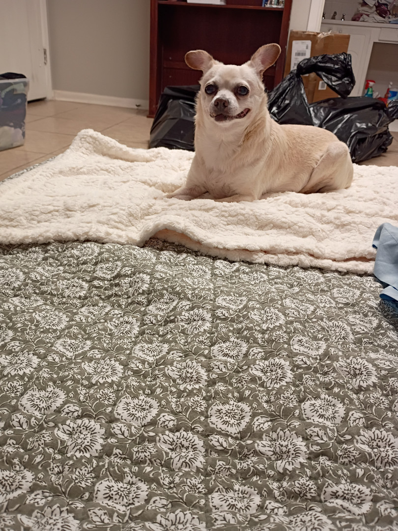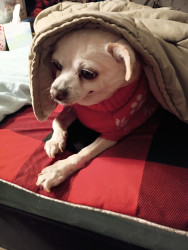 She is a 16 year old Chihuahua mix. I rescued her when she was 111/2 she came from an abusive background. She has thrived since!!! & Spoiled