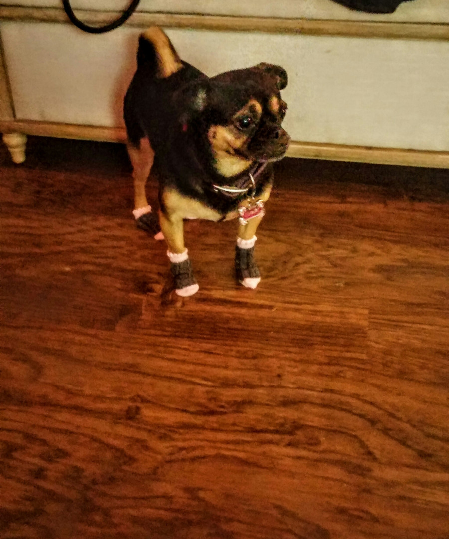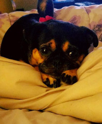 Chloe is a 16 year old Pug Chihuahua mix and the sweetest girl. I got her from my step mom who passed away & she has been a blessing ❤️