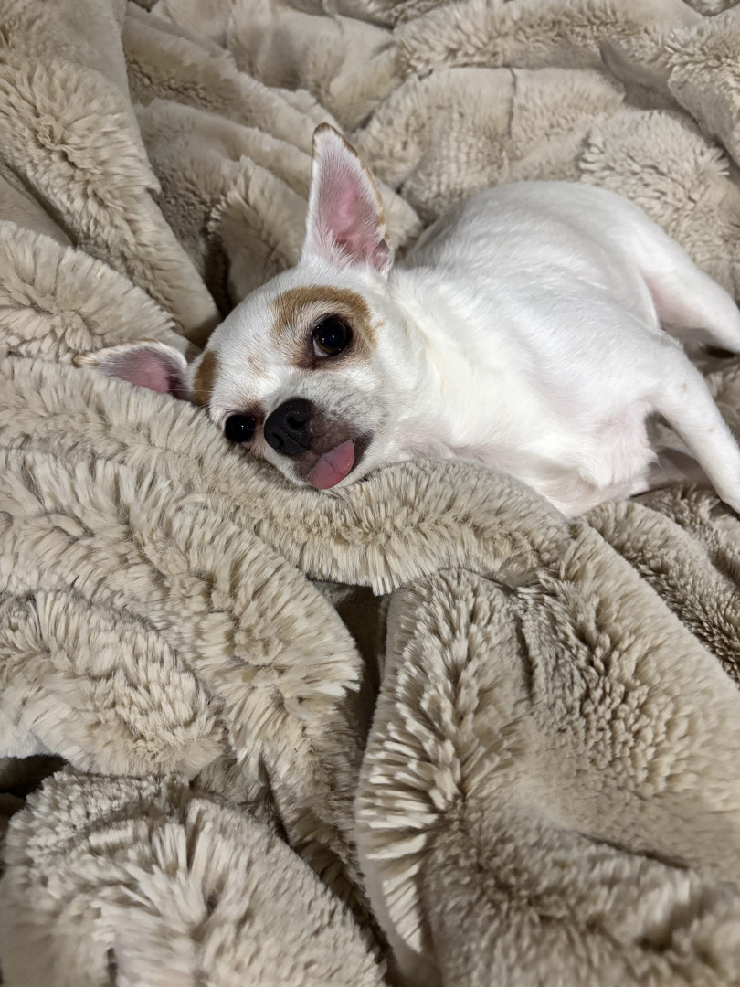 Chloe should be America’s favorite because she’s a lovable little grouch with a heart full of kisses, a toy-loving spirit, and a taste for adventure (and Nudge’s chicken pot pies!). She’s loyal, playful, and smart enough to keep her toys clean by putting them in the laundry basket. Plus, she’s got a special way of winning hearts with her cuddles and monthly BarkBox excitement—she’s pure joy in a furry package!