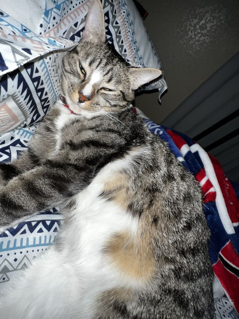 He’s super sweet but he has his moments. The biggest cuddle bug you’ll ever meet! He loves wet food, poultry and raw shrimp.