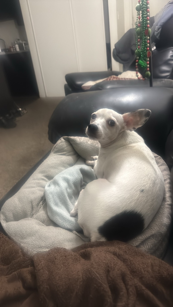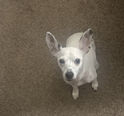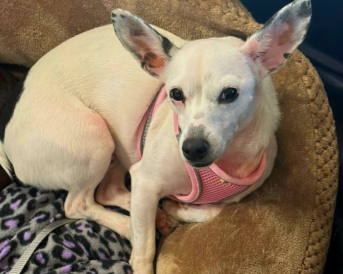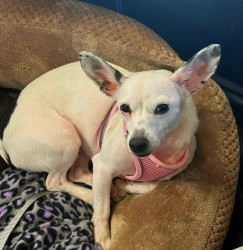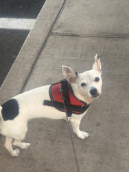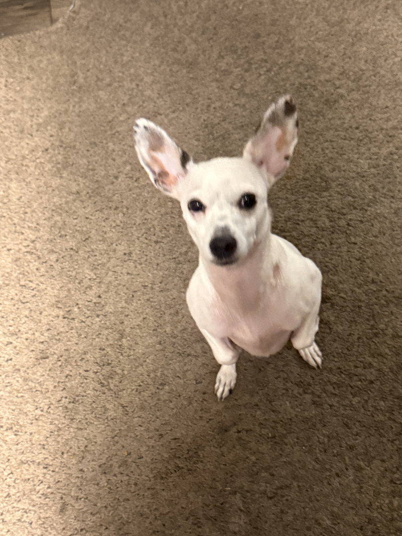 Chloe is a rat terrier chihuahua mix with cute polka dot ears. Very affectionate girl.