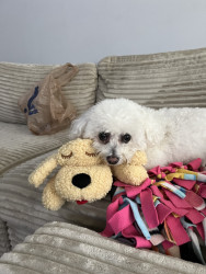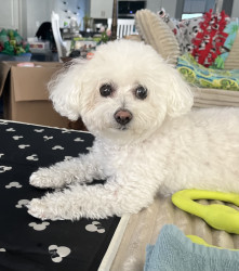 Our Chloe is the sweetest little Bichon Frise, just full of love and kisses. She loves to cuddle and go for walks. 🐶❤️