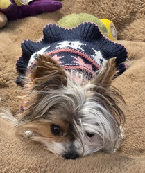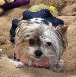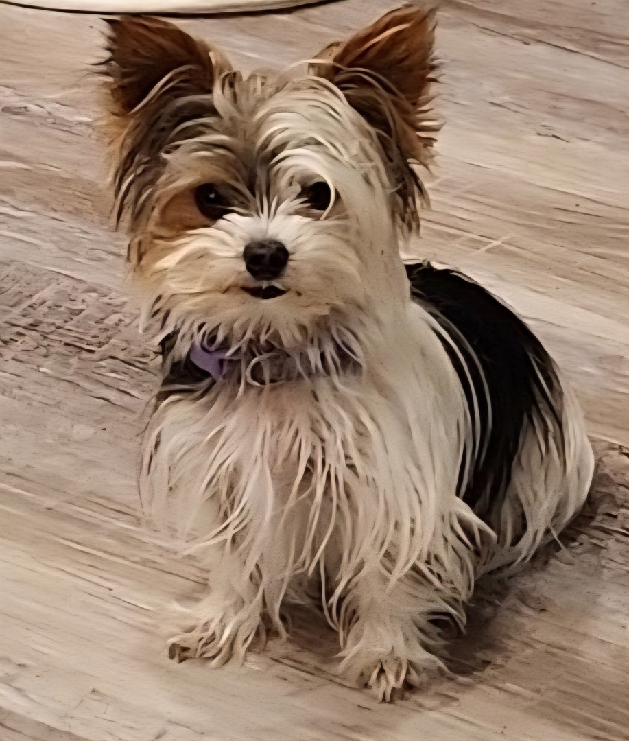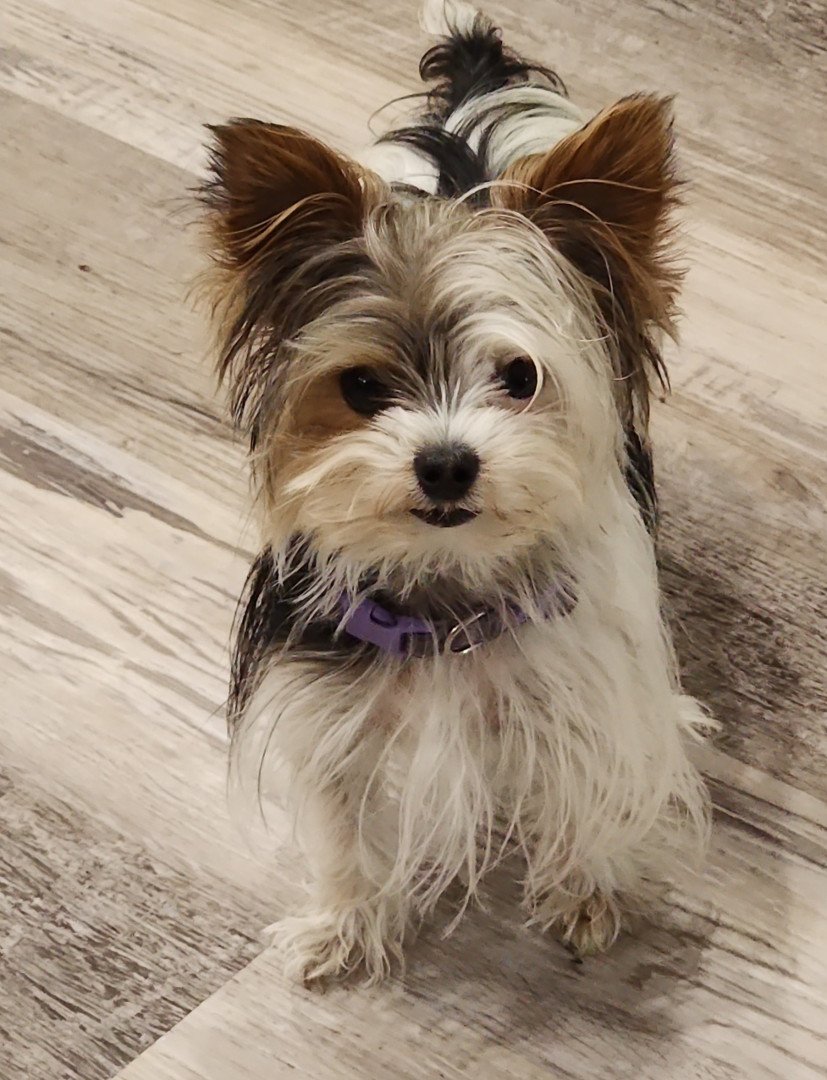 Very smart, tiny 2.5lb 2 year old parti yorkie. Big personality in a small body. Loves to chase cats. Doesn't think she's small at a