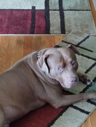 He's absolutely gorgeous everybody say prettiest dog they ever seen the American Pit Bull Terrier his color is gorgeous his face is to die for when he looks at you. I can holler at him tell him he's doing something wrong he just looks at me you know I can't get mad at him for nothing in the world he tested he always test me as his nature.