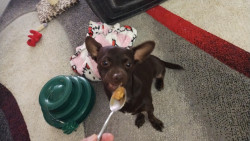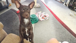 I am his favorite toy..... He also loves to chew on little stick bones I get for him from the supermarket. He will only eat human food.... Hamburger, boiled chicken, potato chips and cheese doodles are his favorite....
