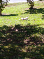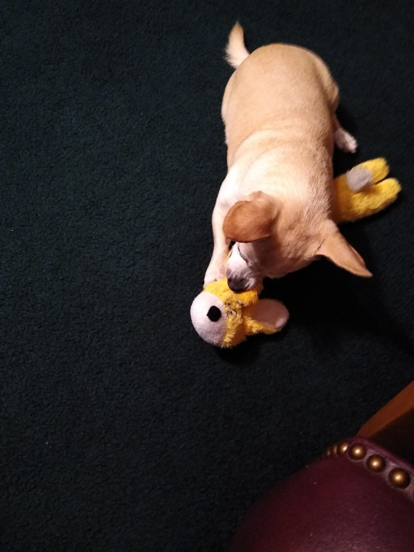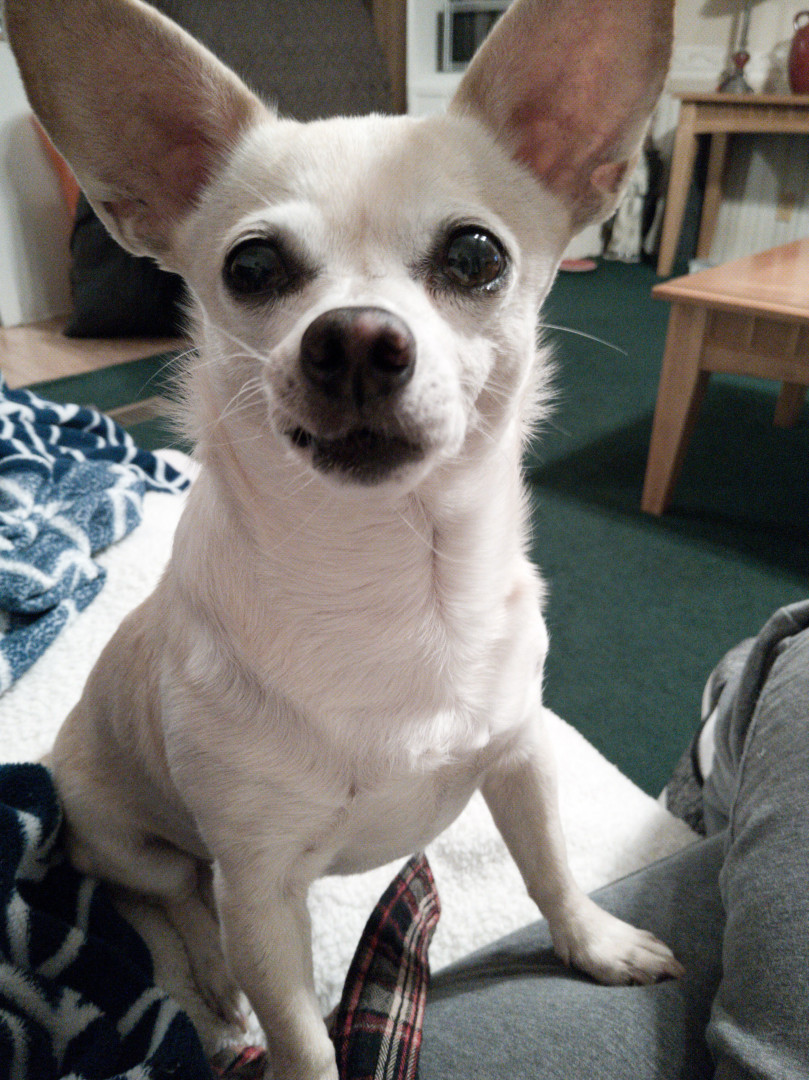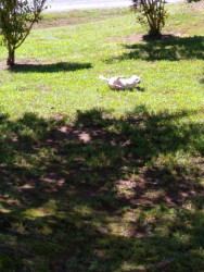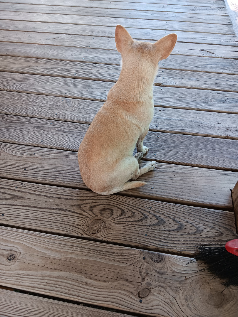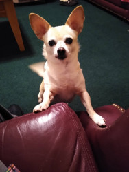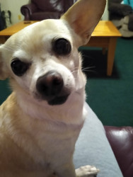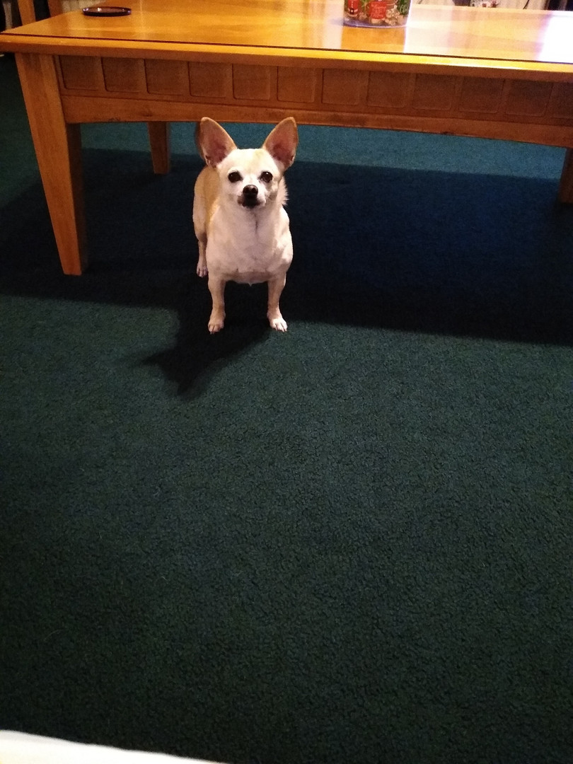 She's very loyal to her owner, and lays in the window, till she gets home, then just has a happy fit to greet her. And loves her back scratched, but chicken is her favorite food she crawl in your plate to get some. She had bad teeth pulled now her little tongue hangs out the side of her mouth, which makes her cute. If she dont get enough food to eat, she lays in the floor facing you, blinking her eyes like she's so sad, too cute.