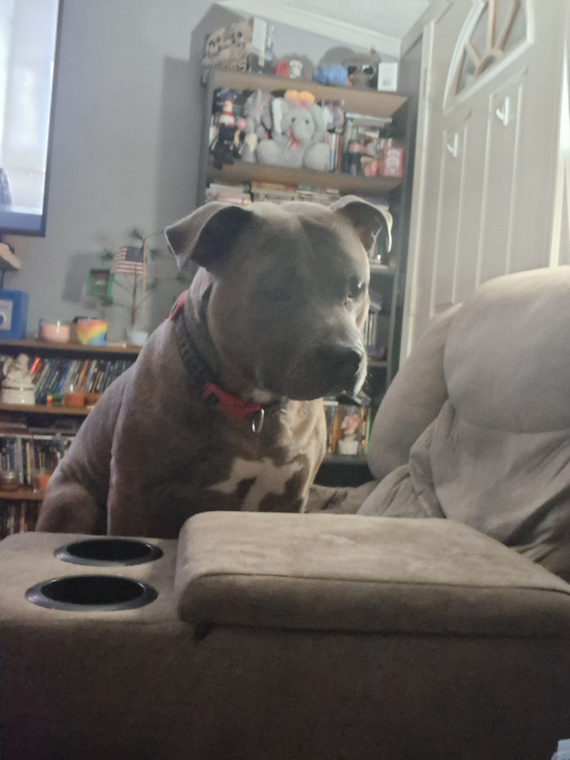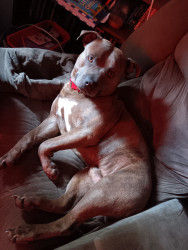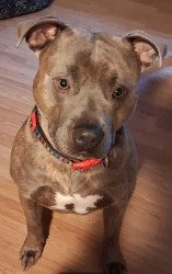 Chopo is a 4 yo pitbull. He is a rescue he is always on the go never stops . Loves people and his favorite toy is a red Kong. Love him so mu