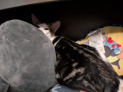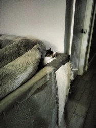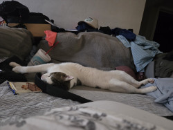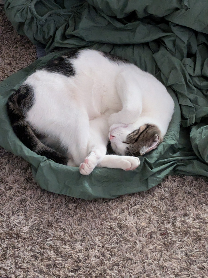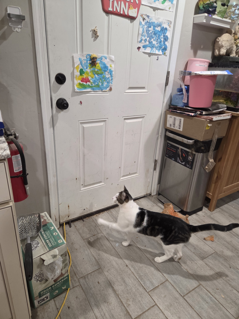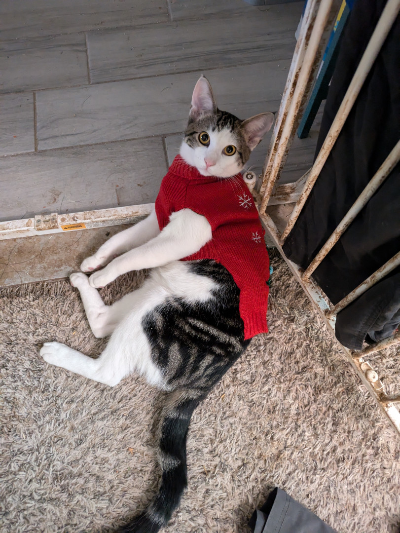 His most unique quality is the way he turns his long, awkward legs into pure personality and comedy. He moves through the world like a cat who never quite realized how tall he is, sliding across floors, misjudging jumps, and stretching out in positions that look physically impossible. What might seem clumsy on another cat somehow becomes part of his charm, as if he’s fully aware that his awkwardness is entertaining and leans into it. Those long legs are central to everything he does.