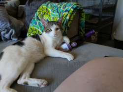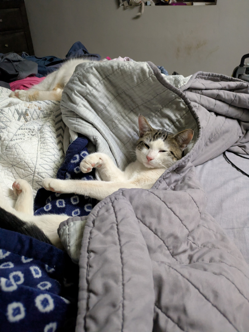 My cat should be America’s Favorite because he’s the perfect mix of goofy and comforting. His long legs turn everyday moments into comedy, whether he’s sliding across the floor, chasing ice cubes, or flopping mid-zoomie. He makes people laugh without trying and offers quiet loyalty and affection when it’s needed most—proving that joy, kindness, and a little silliness go a long way. 🐾💜
