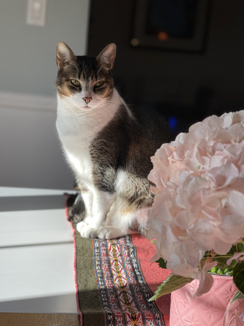 He is a sweet rescue cat, who as a little boy rescue 2 other babies a d brought them to the house that was giving him food! He is 10 y old!