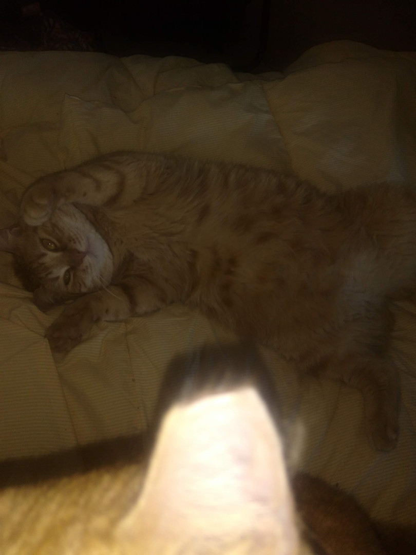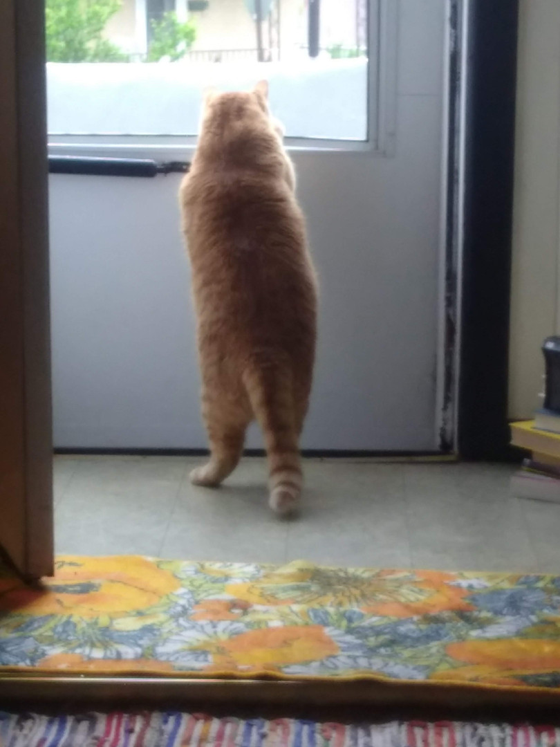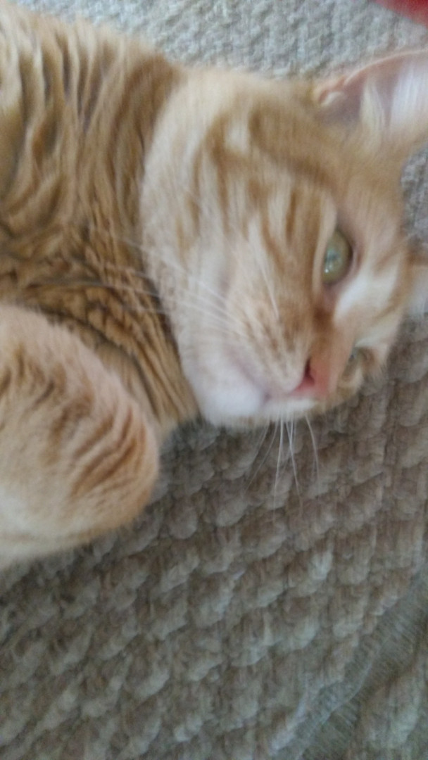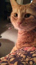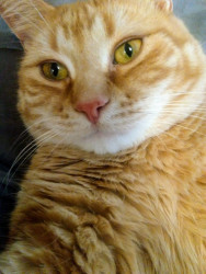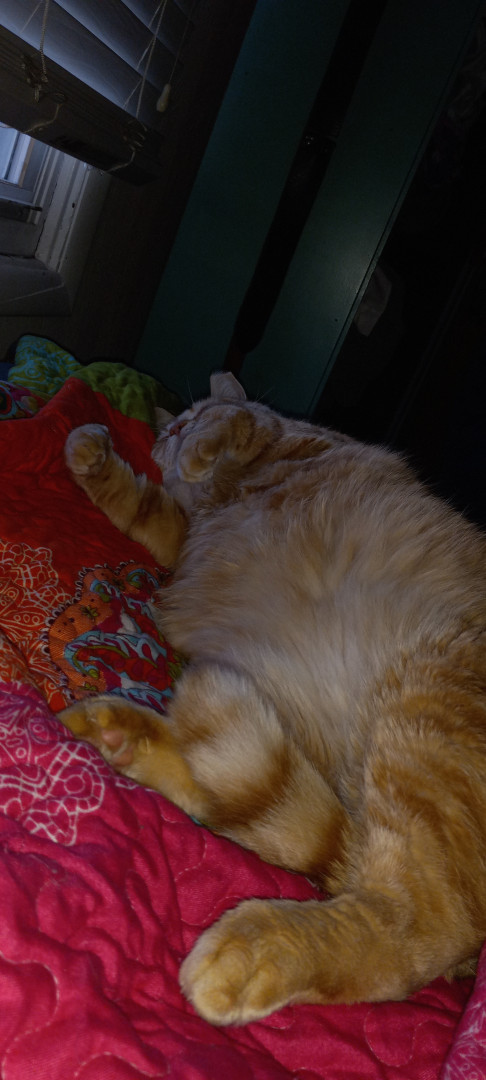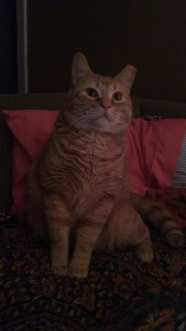 Chunky is an approximately eleven-year-old orange cat whose name perfectly suits him. He earned it at birth, when I took in a pregnant stray