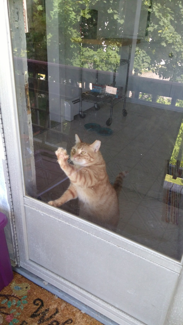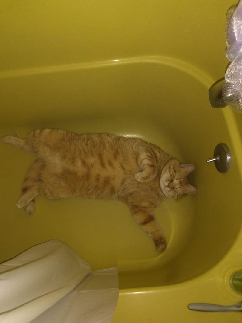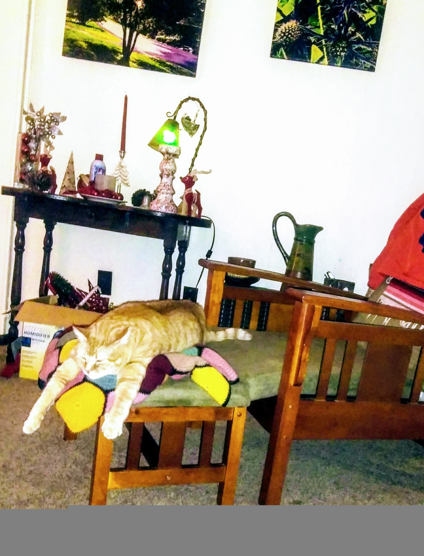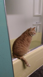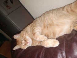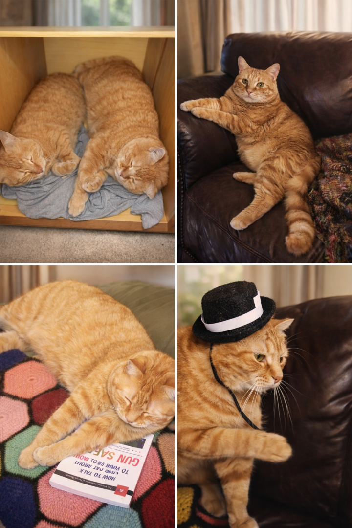 Chunky is an approximately eleven-year-old orange cat whose name perfectly suits him. He earned it at birth, when I took in a pregnant stray