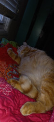 Chunky should be America’s favorite pet because he embodies everything people secretly want from life: comfort, loyalty, humor, and zero shame about loving snacks. He is not just a cat; he is an emotional support system wrapped in orange fur, with the soul of a best friend. Chunky is eleven years old, seasoned, wise, and deeply affectionate. When his person cries, he doesn’t look away or wander off—he shows up. He sits close. He listens. He stays.