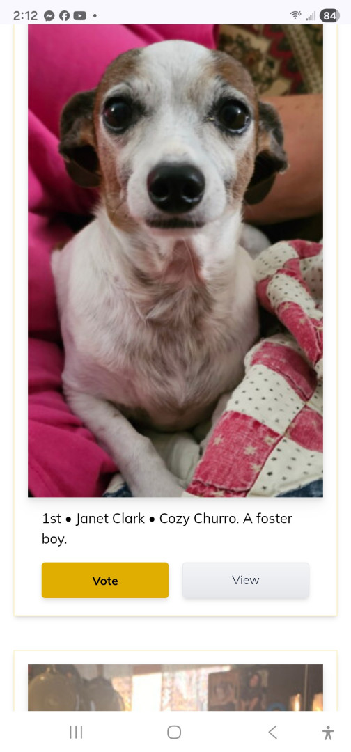 Churro is a foster I have for a rescue. He is so sweet and lovable. He just wants a family. He is about 10 years old. Very smart. He loves a