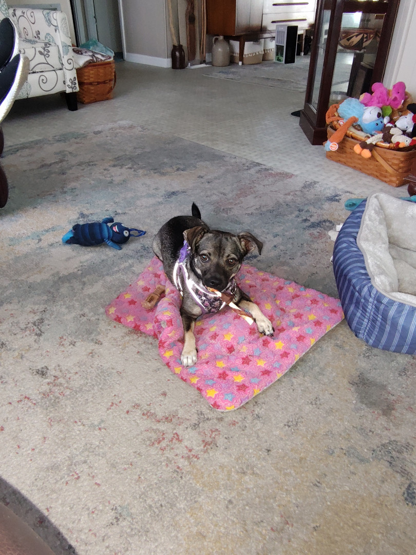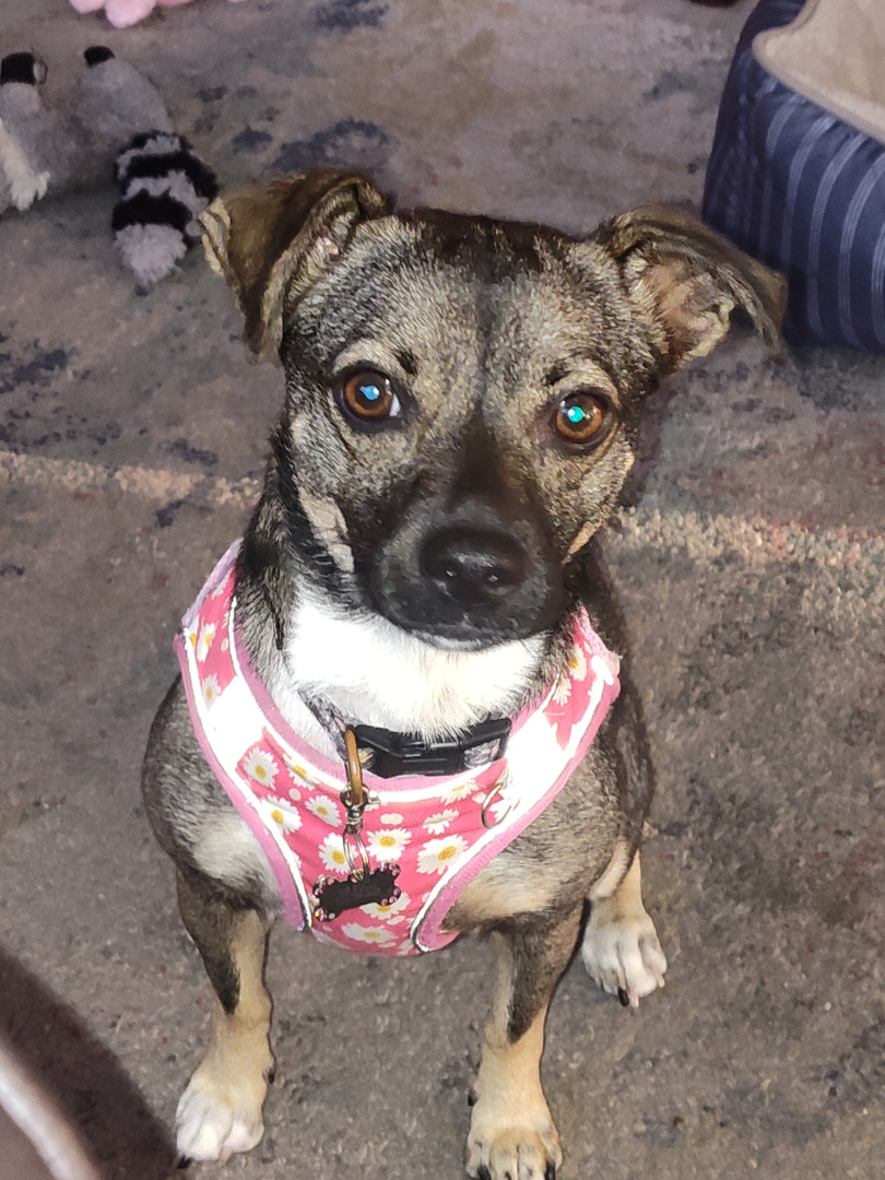 Because she is the cutest little dog who loves to play. A little mixed breed with lots of energy and excitement. She cocks her head to one side when she's listening which is adorable. Everyone always wants to pet her and they say she's so precious.