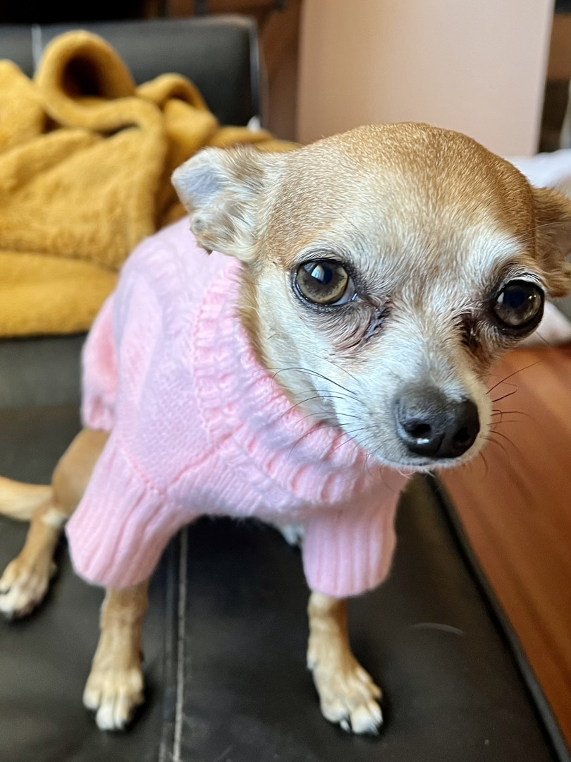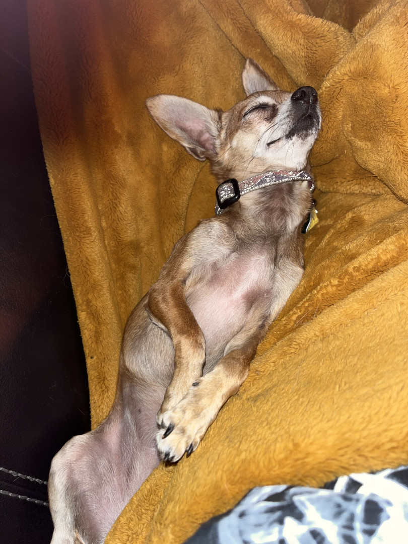 CinnamonBaby, is the smartest, sweetest, cuddliest chiweenie ever!! She asks for what she wants with her eyes, it’s hard not to know.. lol