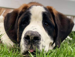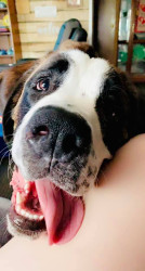 Everyone loves a small cute cuddly dog. Clarabell is that all wrapped up in a big body. She doesn't know she is huge. She has to sit with me in my chair or whines till I tell her to get up there. She has the biggest heart and loves everyone. She has never met a stuffed animal or "Stuffy" as we call it, that she hasn't likes. She carries them everywhere and doesn't destroy them. You couldn't ask for a more loyal dog than she is. Everyone loves her. She is a mommas girl.