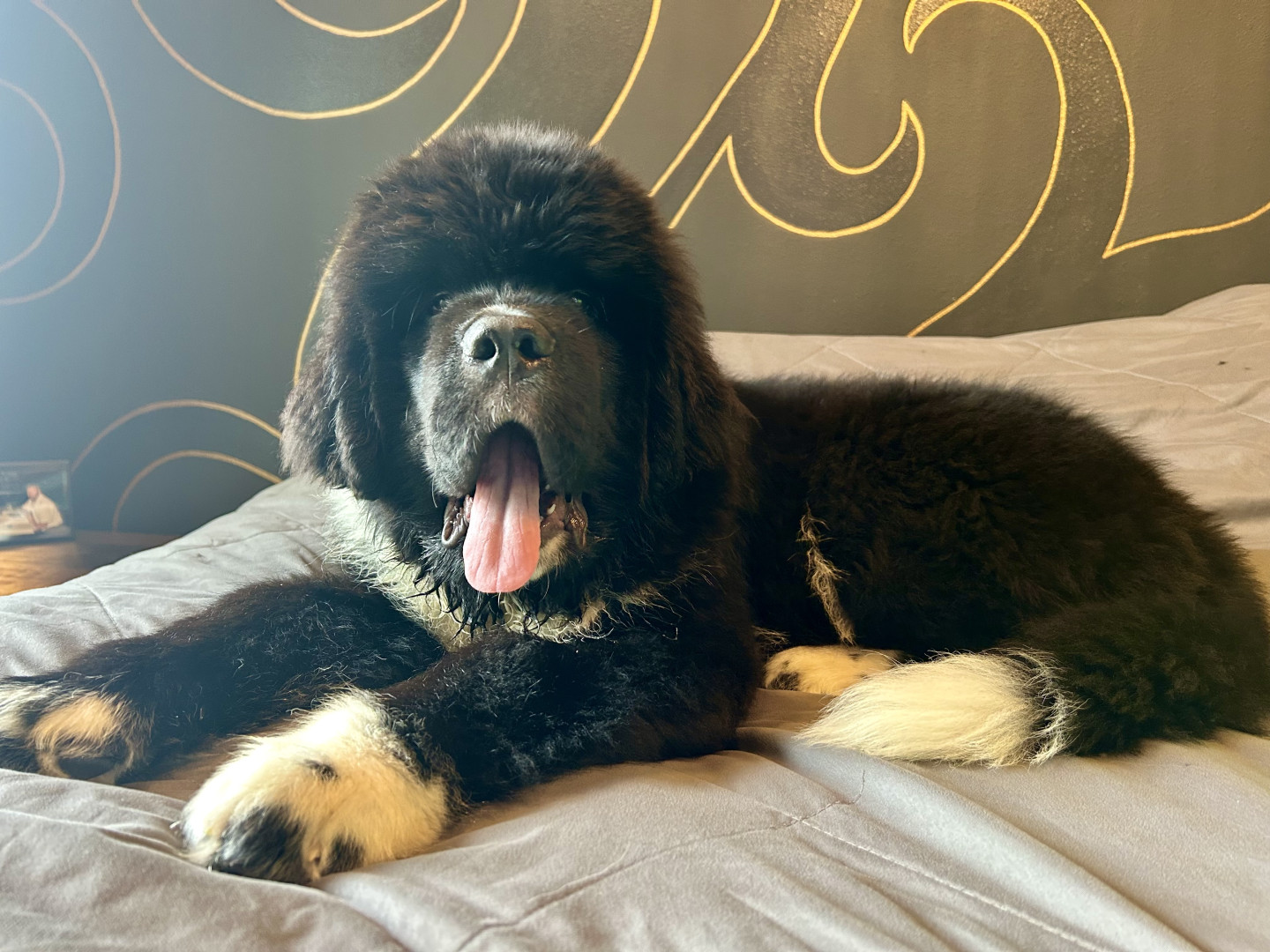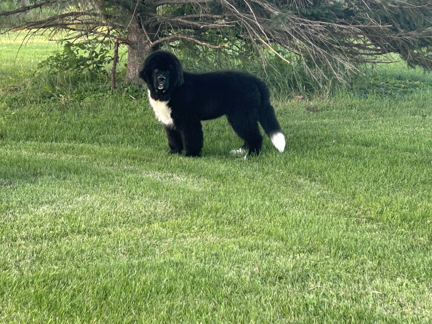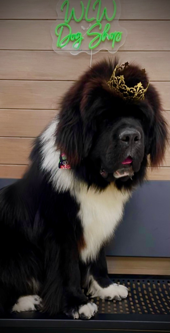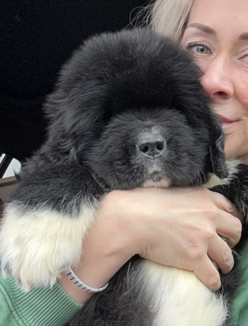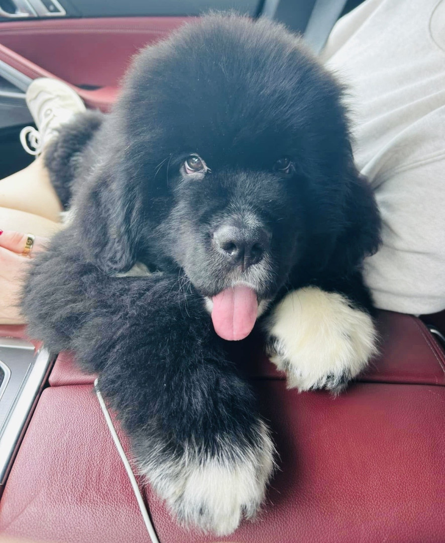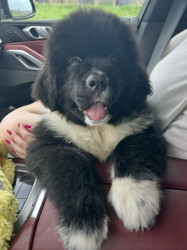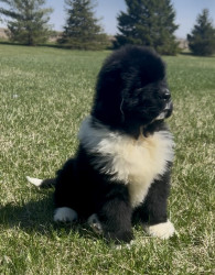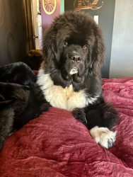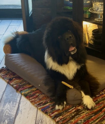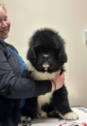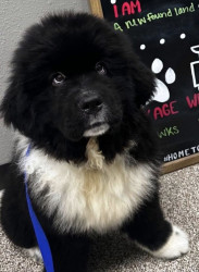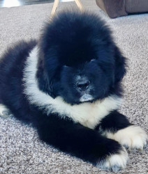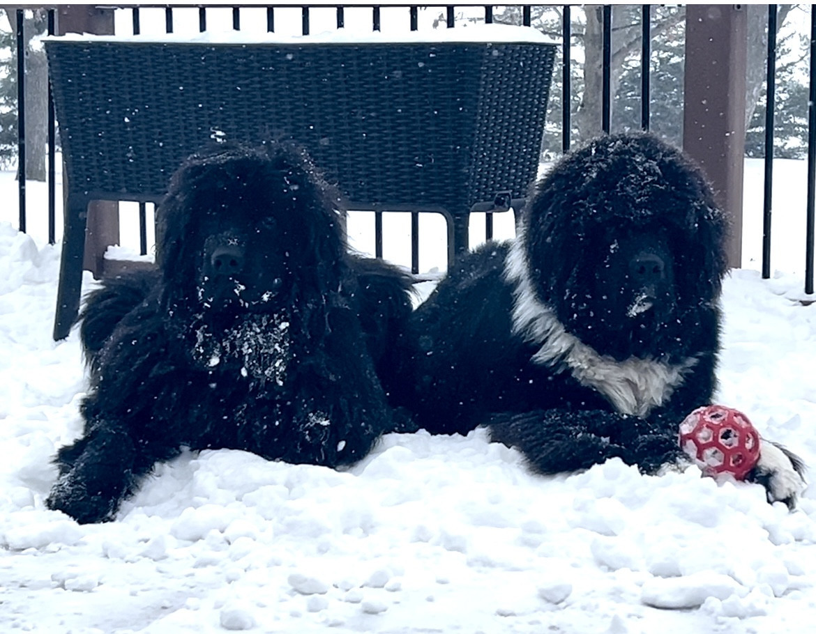 Meet our youngest Newf, Clarence!125 lbs of fluff and growing! With markings of white boots & scarf he’s always ready for his favorite-snow!