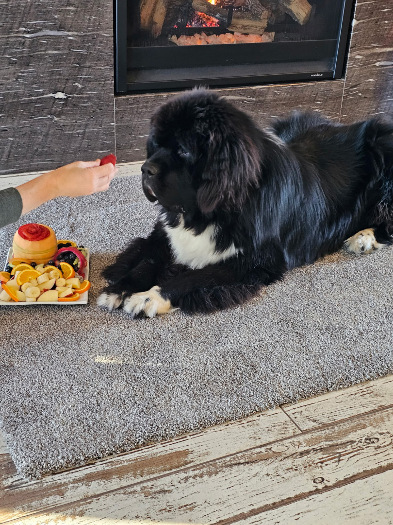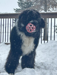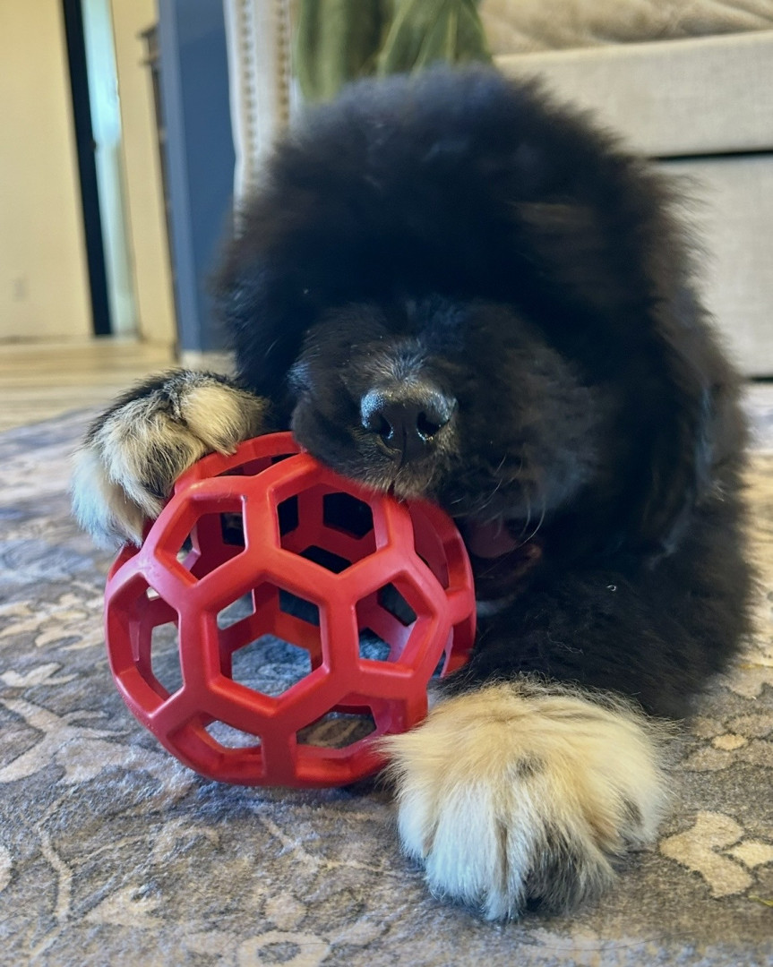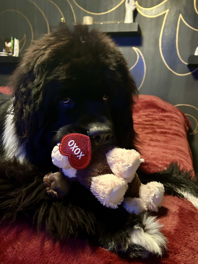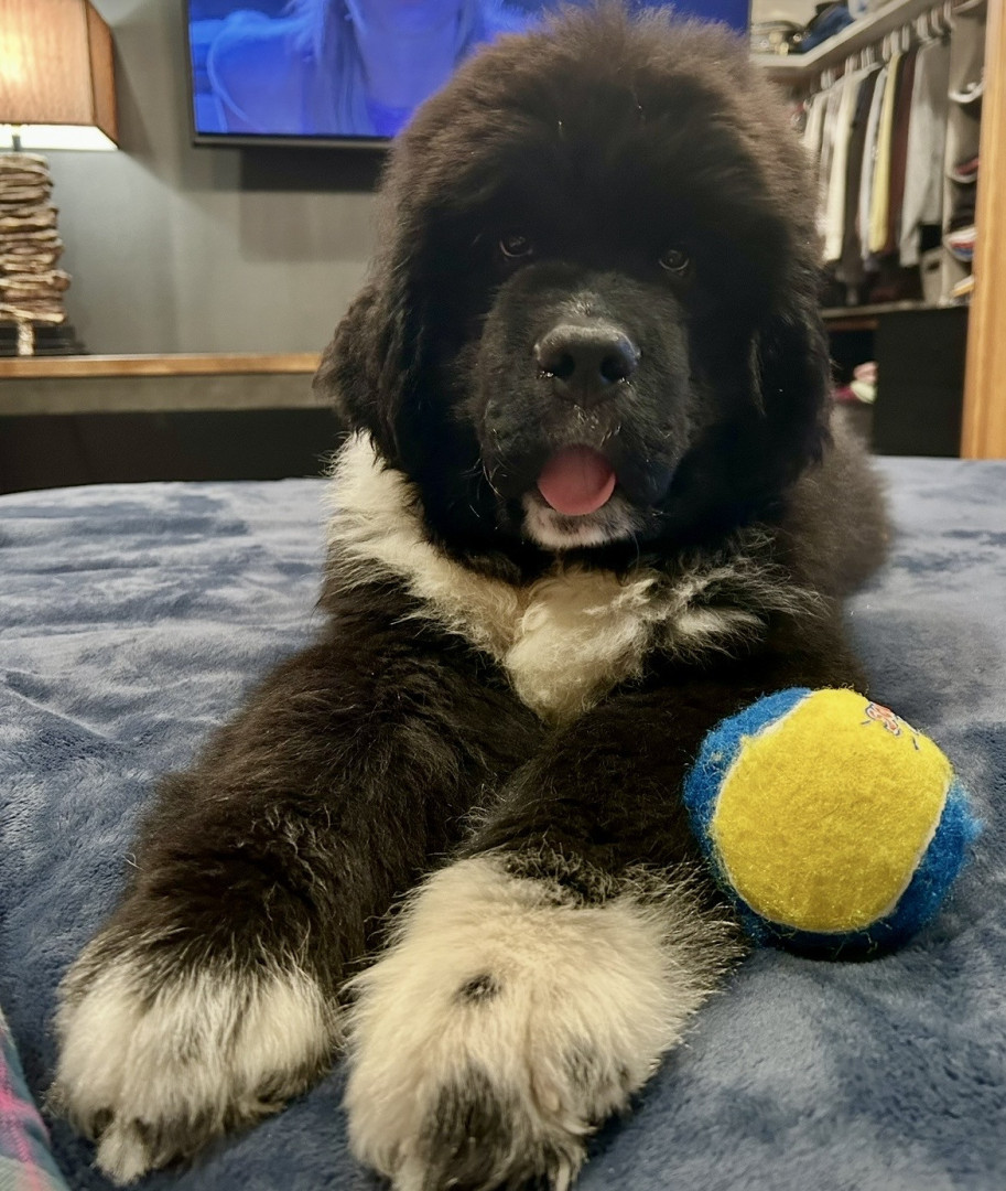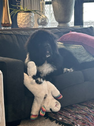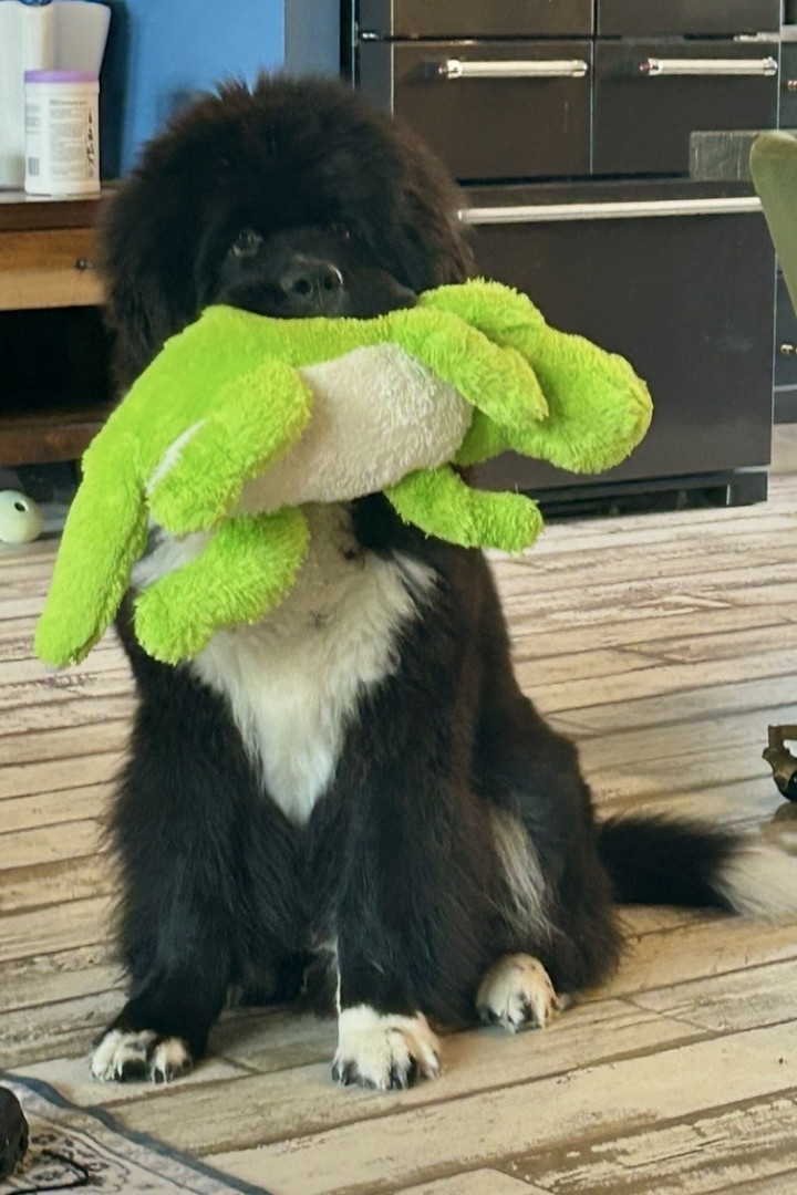 Learn MoreYelling, “ Celery” is the way we get him in the house after playtime, making us the crazy neighbors! He also loves giant cabbage leaves, long carrots, and can’t decide if radishes are a toy or treat. His favorite toy is his Newfie sister, Betty! He doesn’t discriminate on his stuffies, they are scattered equally throughout the house; a chicken, a goose, a duck duck, a dog!