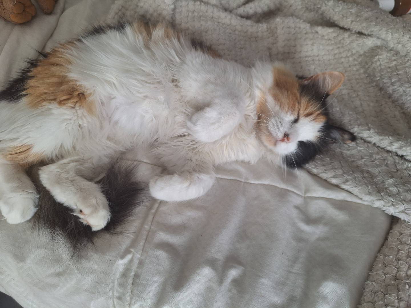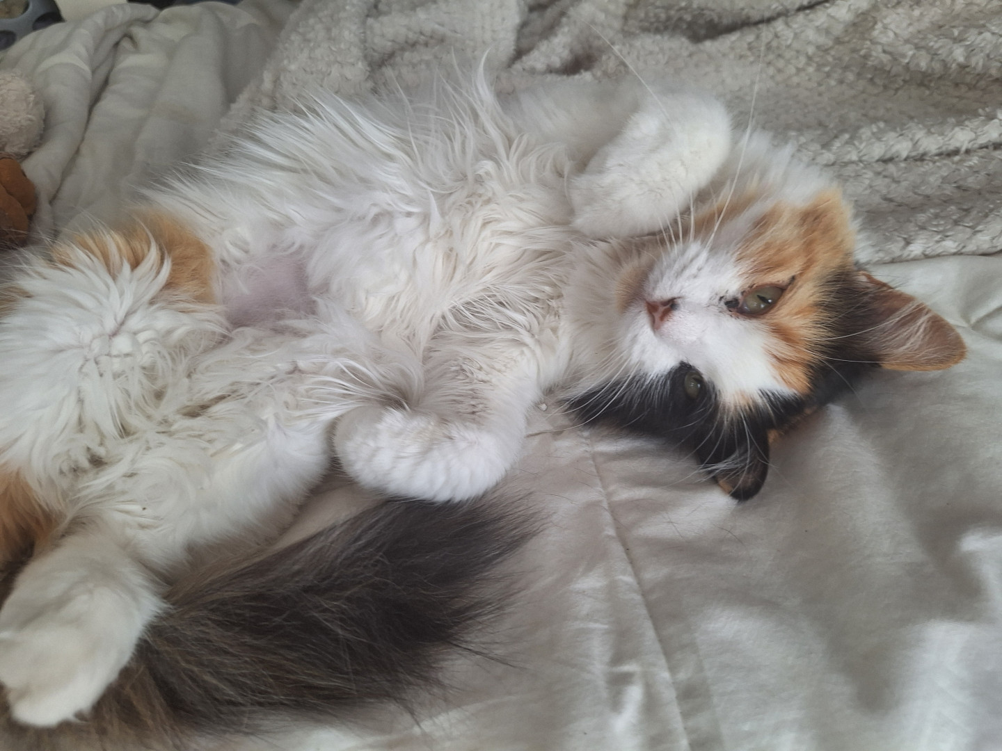 clementine is super cuddley and loves sleeping by my head every night shes kind of a chunk and eats the other cats' food shes super swee