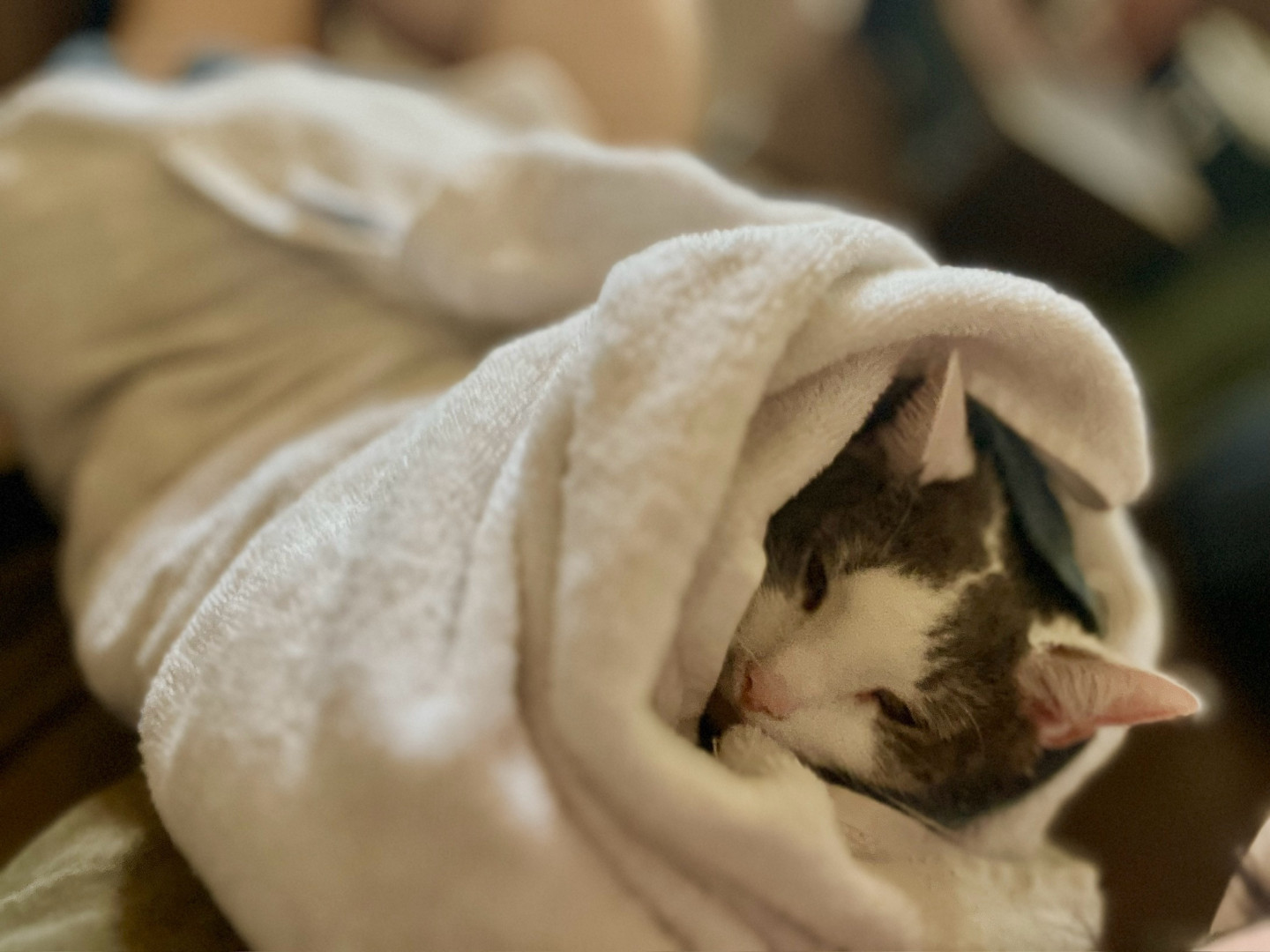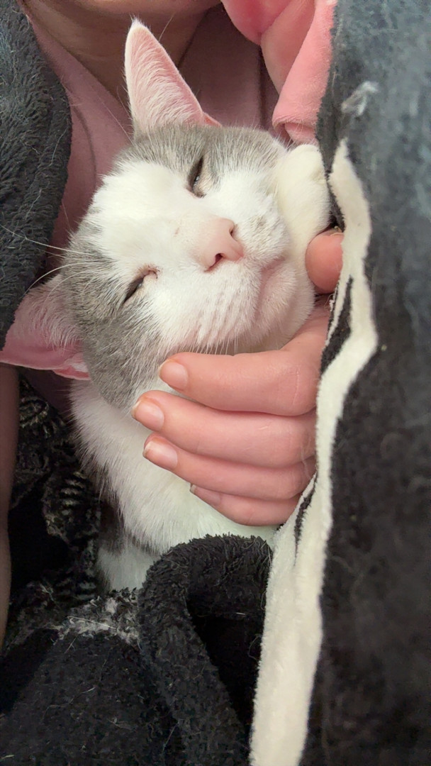 She has been with me since I was a child, originally belonging to my bestfriend till she couldnt anymore. She is the reason I keep going. Just a few months ago I left a situation, and now I am currently homeless (though I have somewhere to stay— It cannot be forever.) Without her, I dont know what Id do or where Id be. She is not just my cat, but my bestfriend. When Im crying, she’ll come and cuddle me, purring and licking my face. Shes my soulmate :)