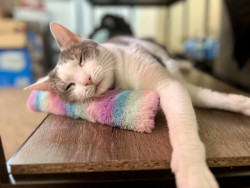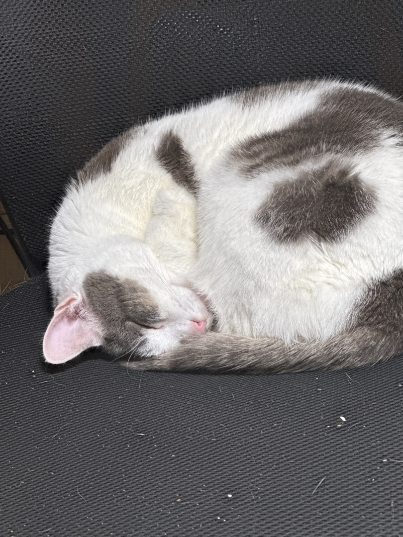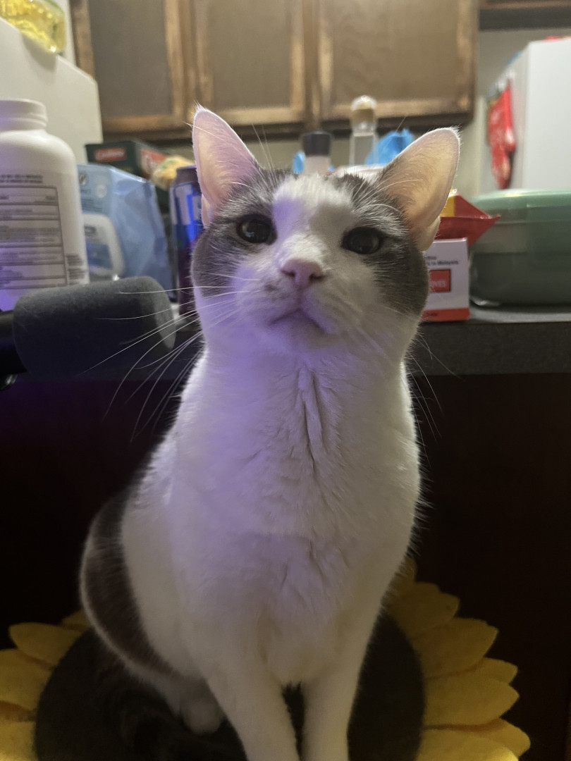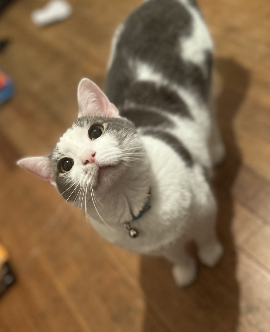 Loving, silly & smart. Cleo knows how to sit, spin & do “uppies”. Shes a wonderful little cat :)