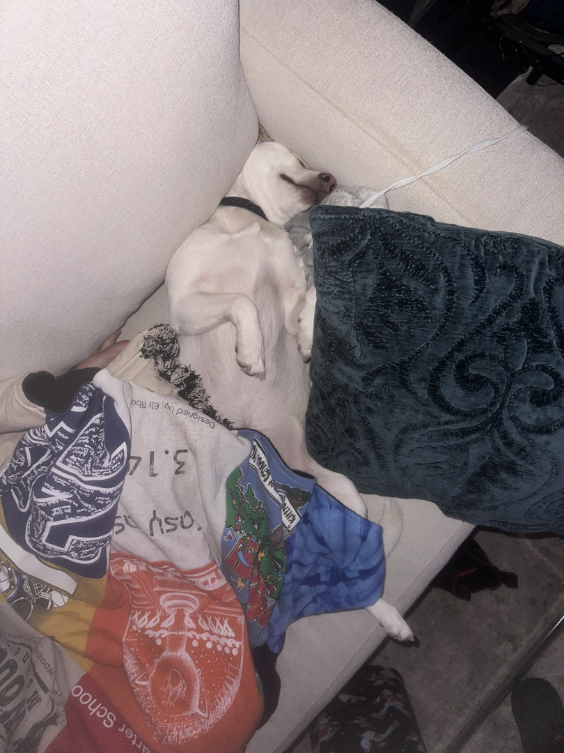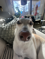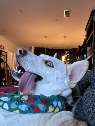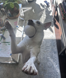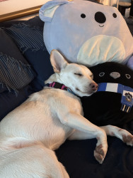 Learn MoreCleo is obsessed with anything that squeaks... unfortunately, most toys don't survive long (we call it a full double-bypass surgery). Her one exception is Nessie, her Loch Ness monster toy, still miraculously intact. As for treats? She LOVES chicken.