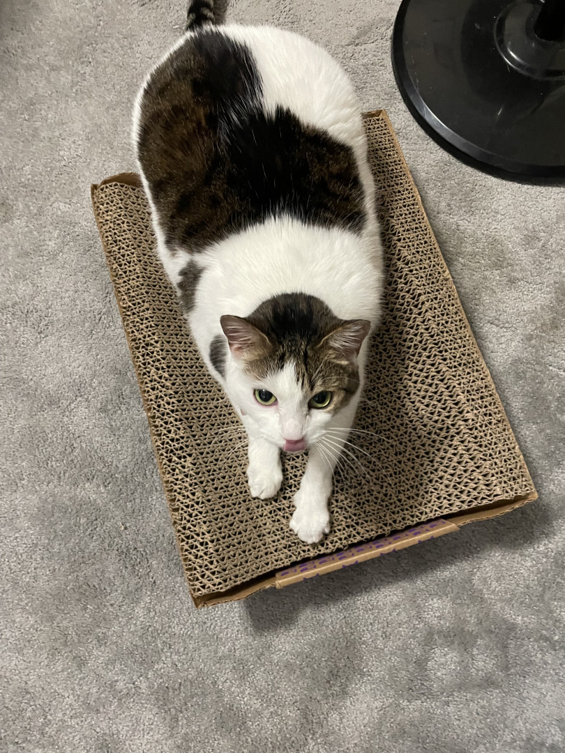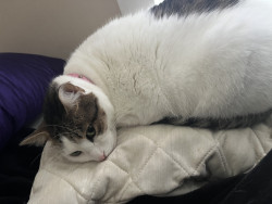 Cleo loves naps and treats! She a very sweet girl and love cuddles. She’s shy around new people and she loves her brother sushi-flea.