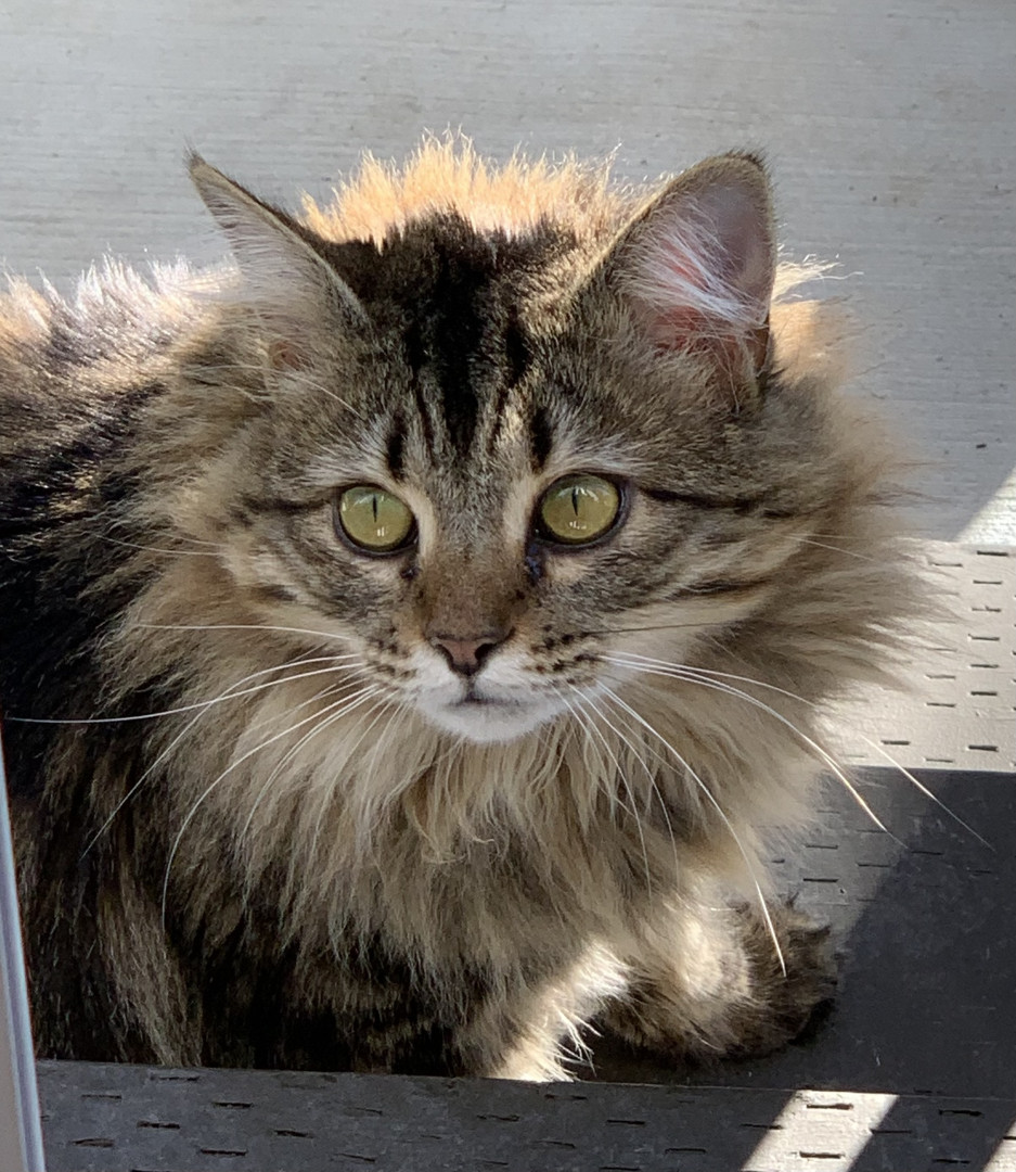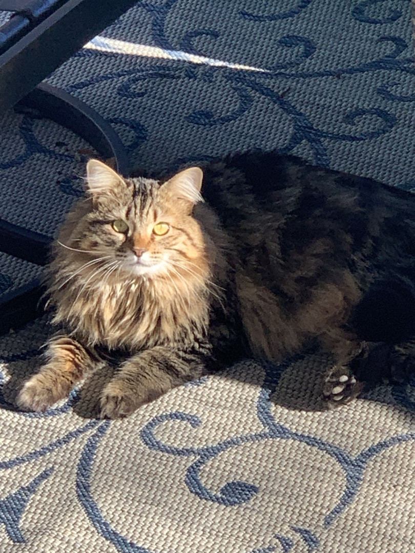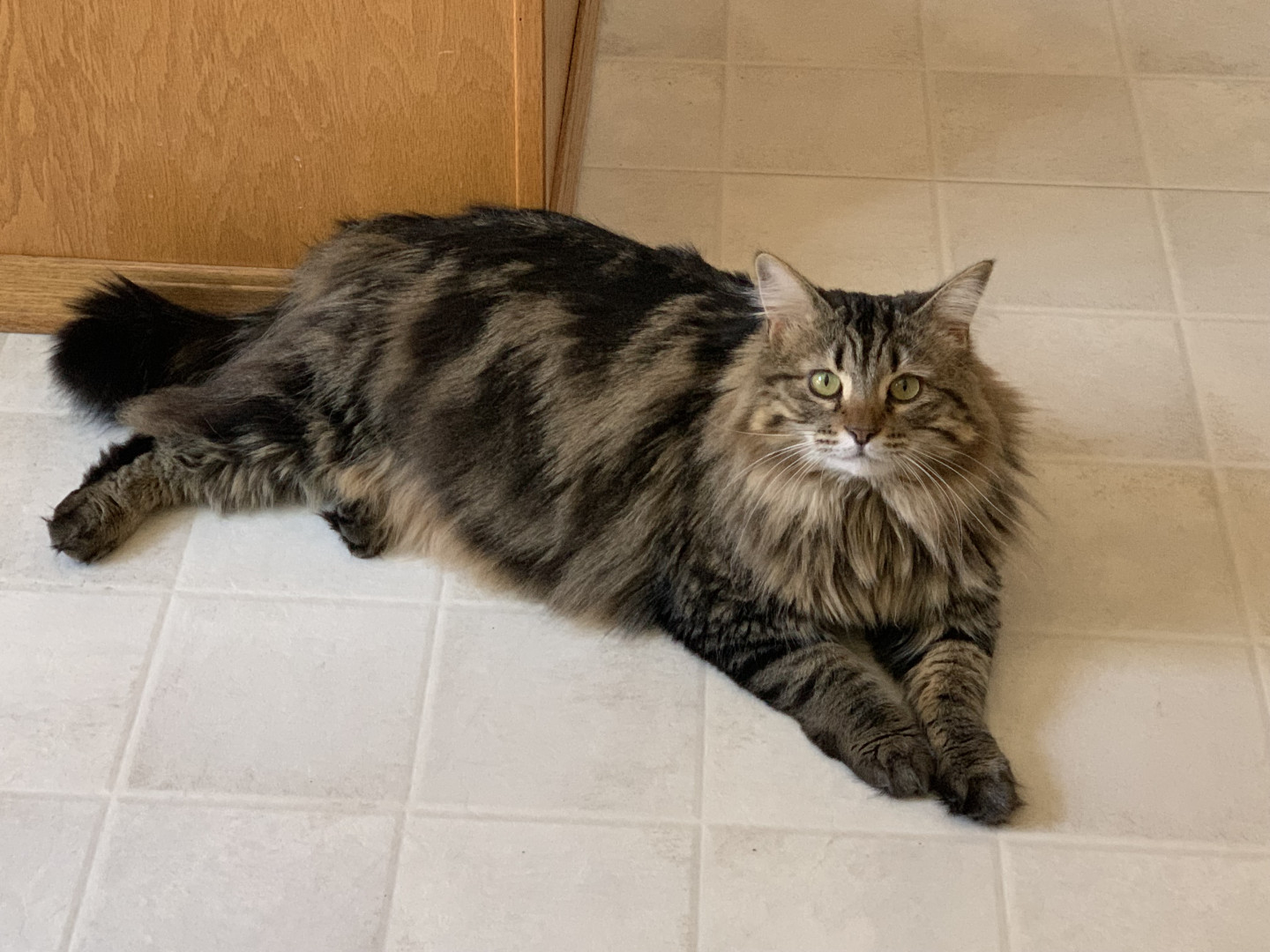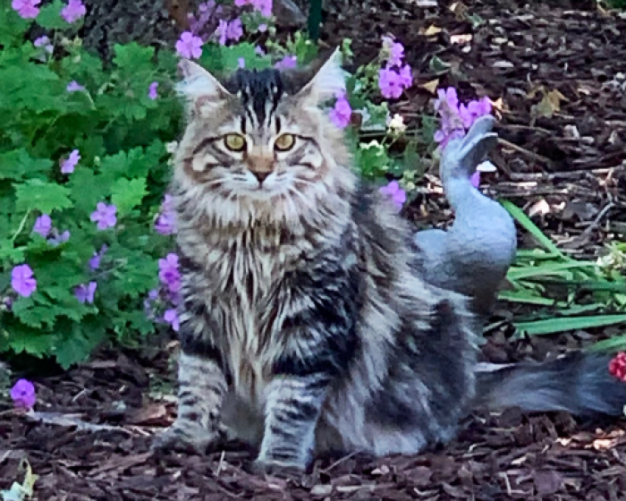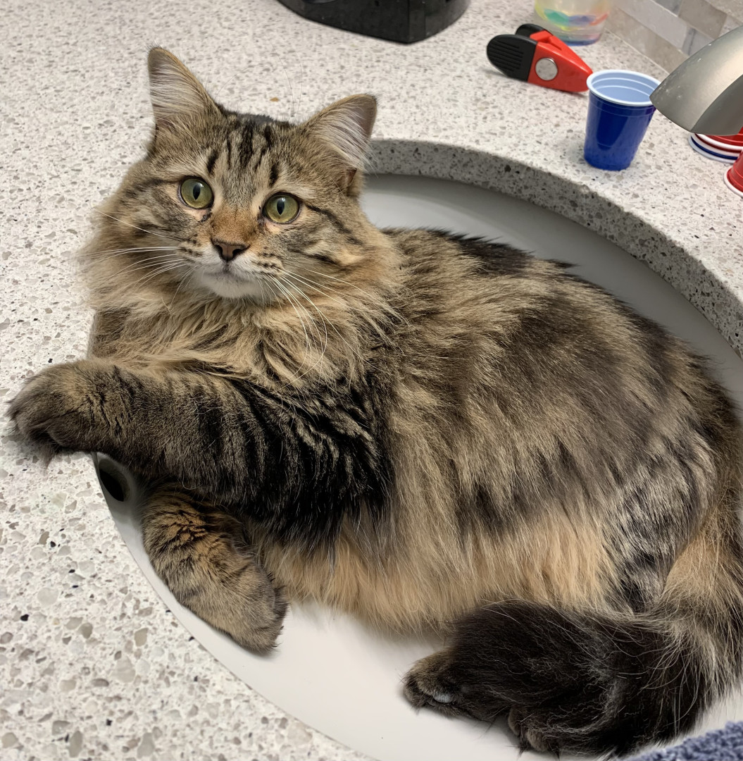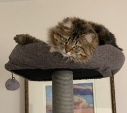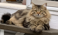Cleo is a 1 year old rescue who was abandoned and is part Maine Coon and Siberian! She is playful and a sweetheart!