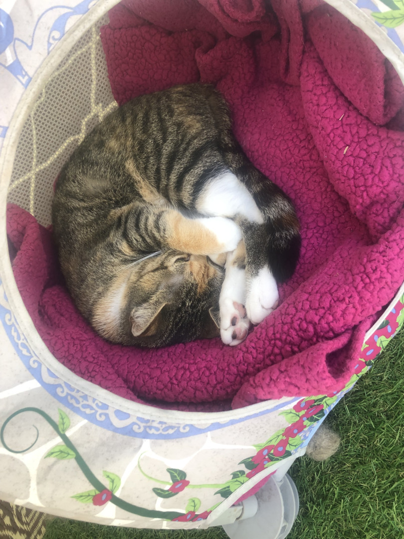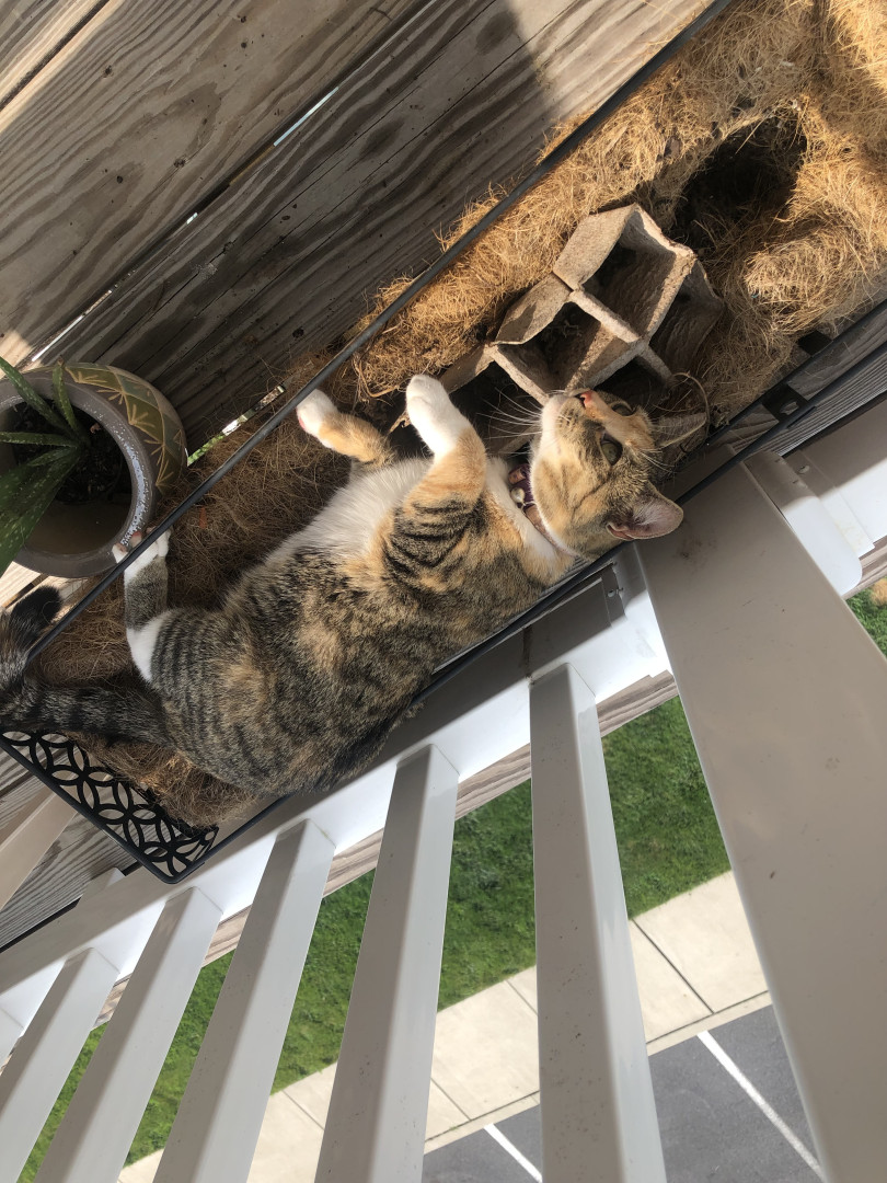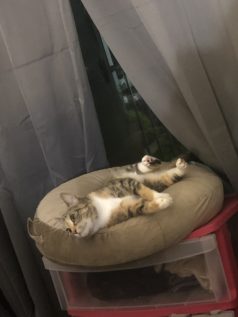 She flops when she wants something Always wanting to be the center of attention. She loves taking naps on the patio in here tent wherever possible