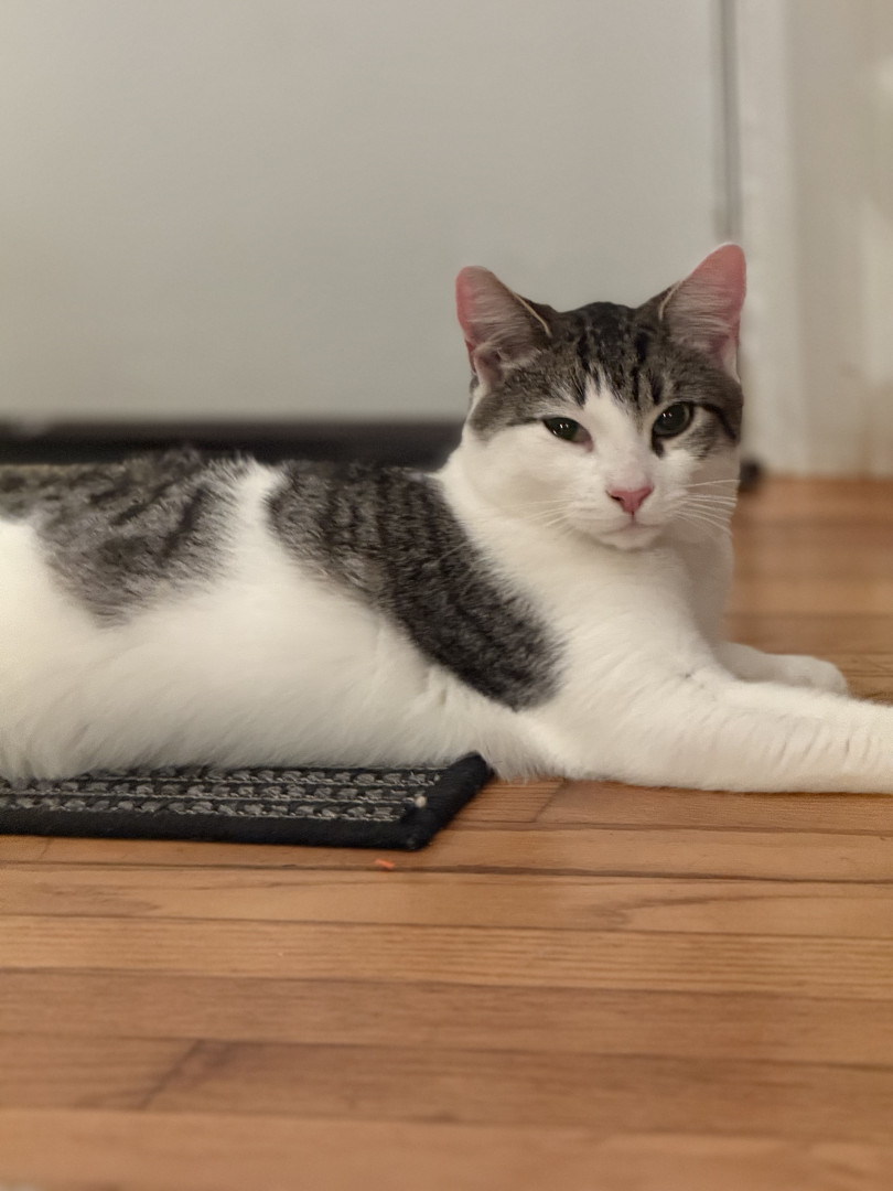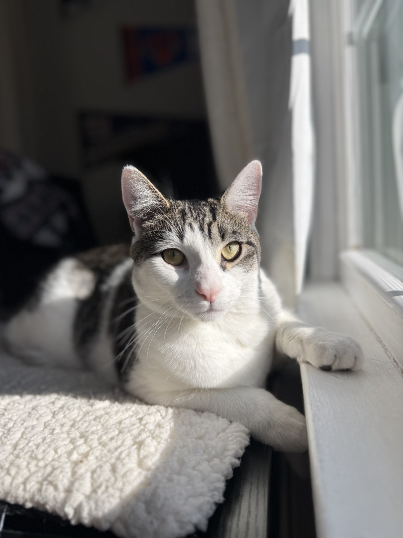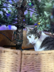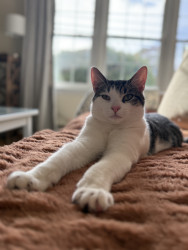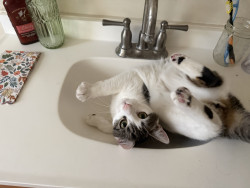 Clyde is an 8 month old kitten who is relaxed and goofy. He loves to play with water and you might find him in the bathtub or sink!