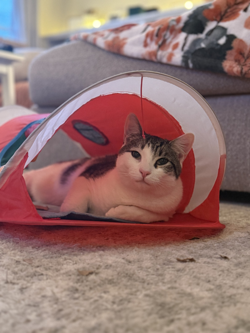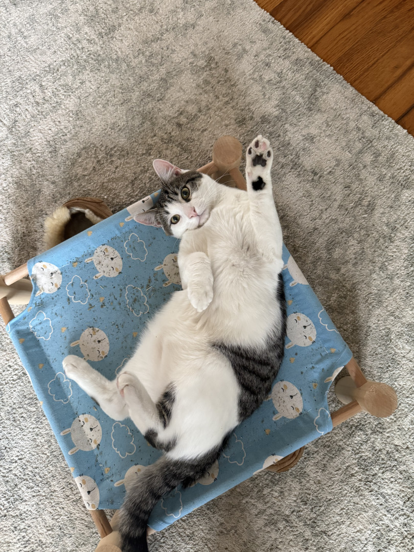 Learn MoreHis favorite toy is the cat wand and springs. He will run down the hallway chasing after the springs and bring them back to us. He loves bonkers treats!