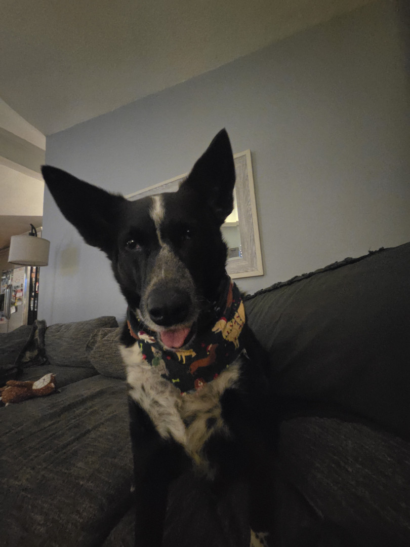 Clyde is a 6 year old Border Collie/Heeler mix that we rescued as a pup. He loves walks and cuddles with his humans and his guinea pig Eugen