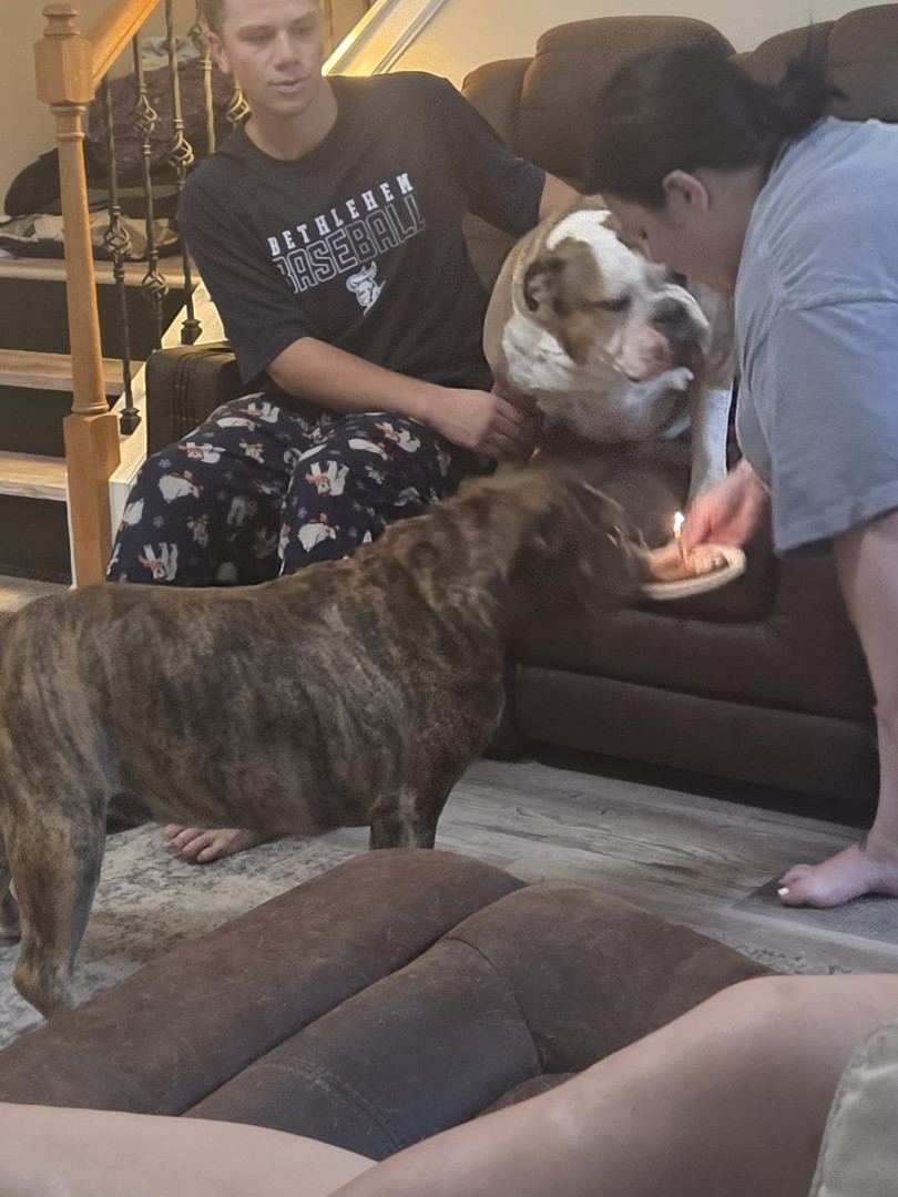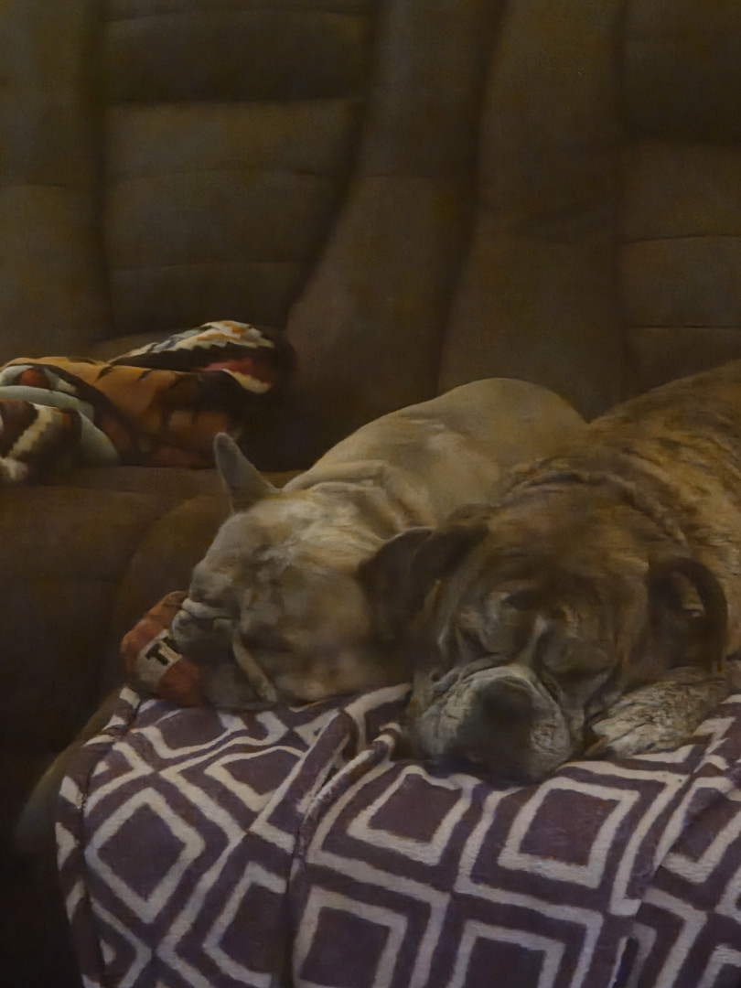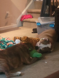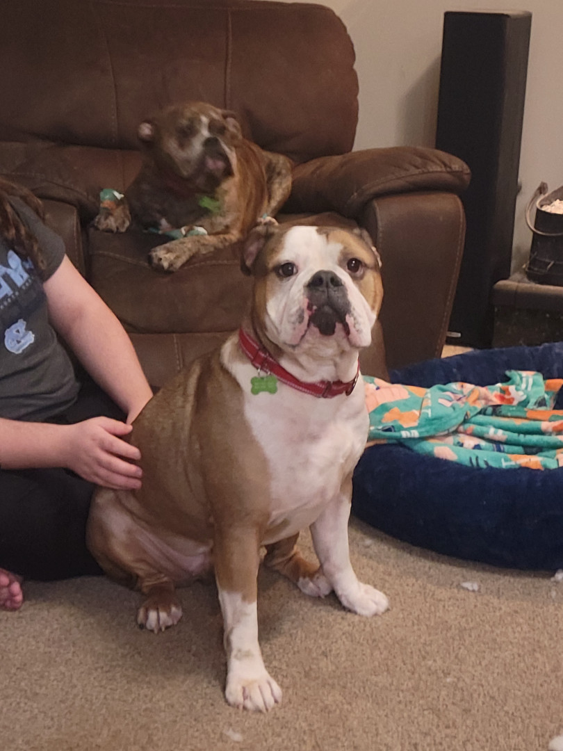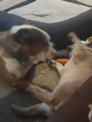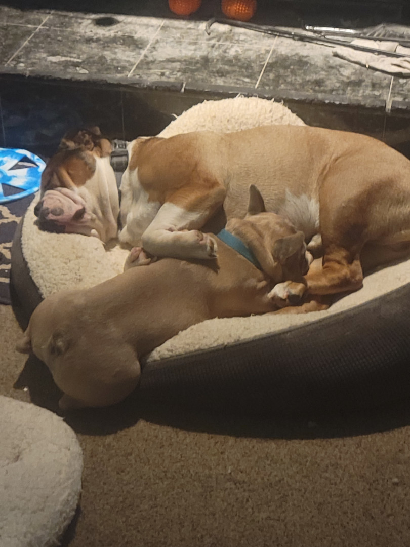 2 reduced old English bulldogs and 1 frenchie