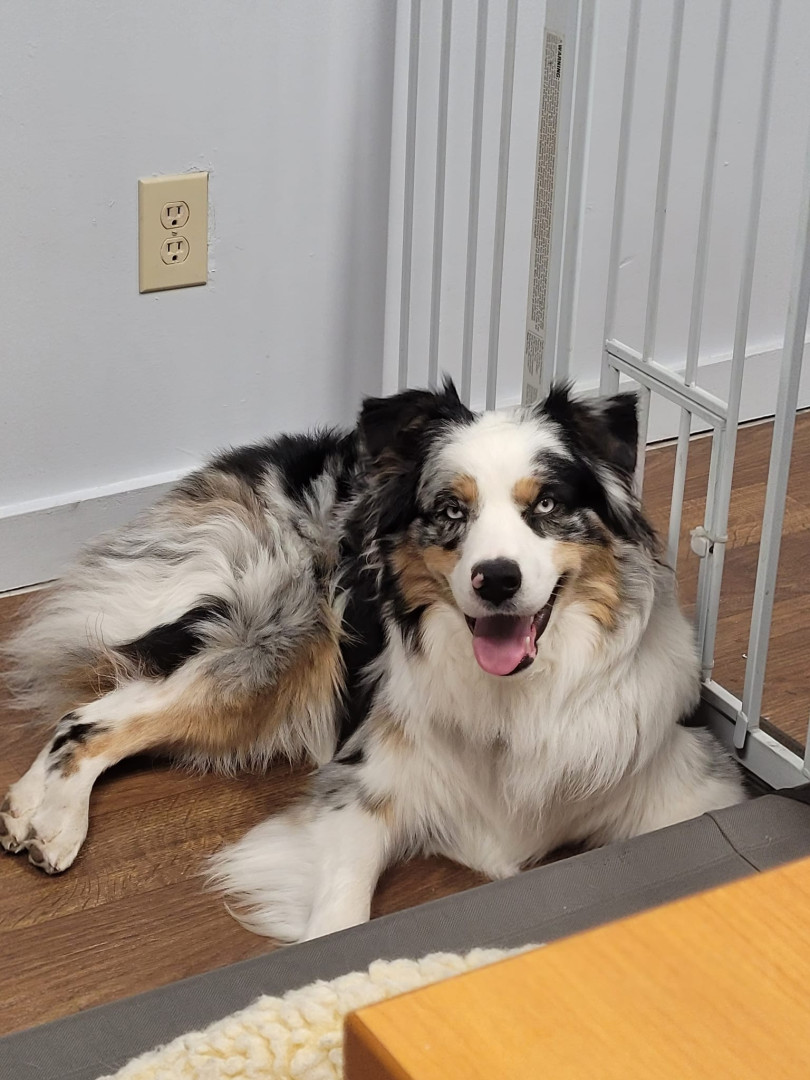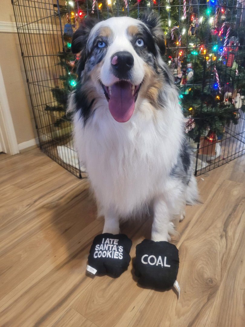 Coal is a 4-year-old fun loving Australian shepherd. He loves to play frisbee, snuggling with his mom and playing with his brothers.