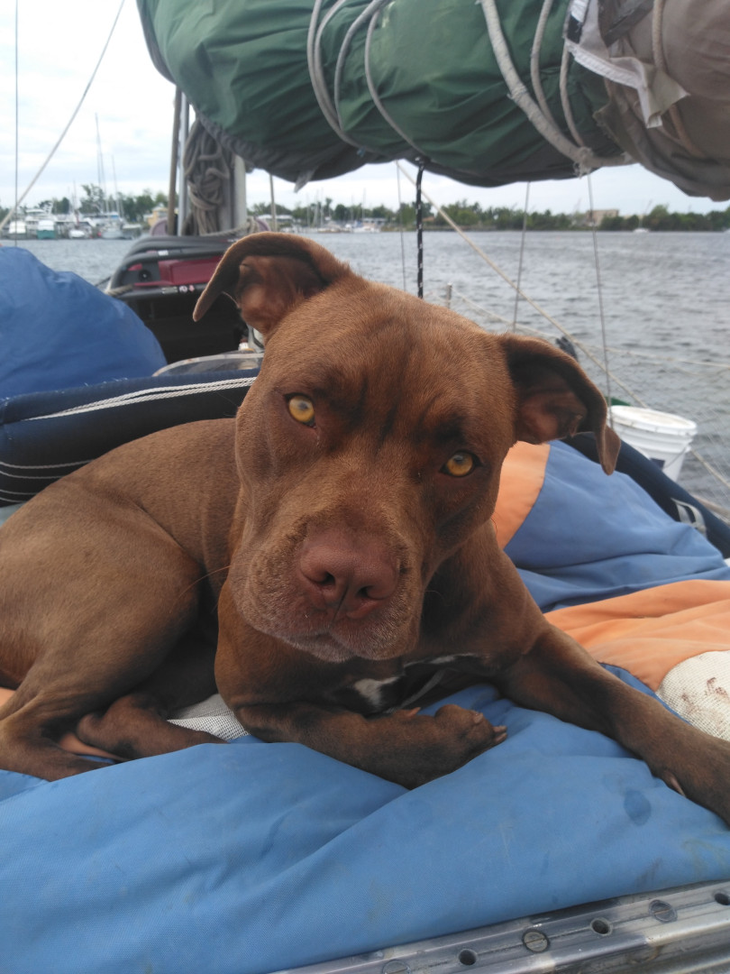 Her yellow eyes and thinks she's a lap dog. And had 14 puppies 5 died. And her one little girl is exactly like her when she was a puppy. She won't leave her Momma's side.