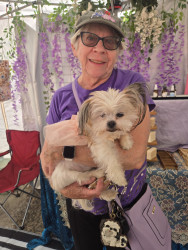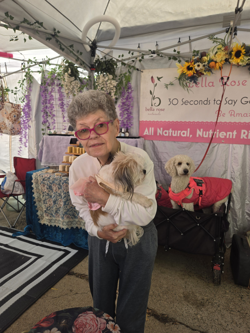 Coco is a vibrant survivior with an unstoppable personality. All 7lbs. She has the ability to bring joy to all she comes in contact regardless of what kind of day you're having. This tiny "bundle of joy" will go up to people just to brighten their day. It's as if she knows our world is in need of more love and kindness. Her past has not stopped her from leaving a lasting impression on all she comes in contact with. Every year my customers come see her to get a dose of the healing power of her ❤️