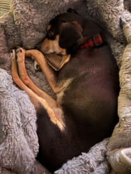 She’s the sweetest most loving nugget ever. Always wanting to cuddle. She has a built-in house alarm for passersby. She is our love!!