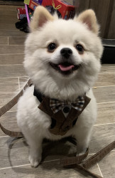 Handsome smart sassy playful. Loves too dress on his bow tie and very fluffy.