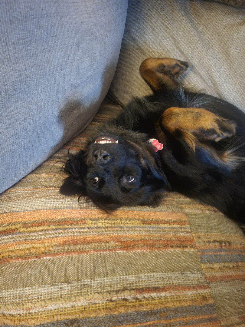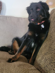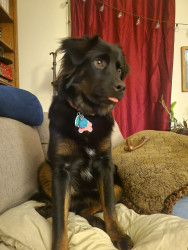 Sweetest, scaredy cat, aussie mix rescue. Such a new soul. We think she may have been abused, so it has taken a lot of patience and love.