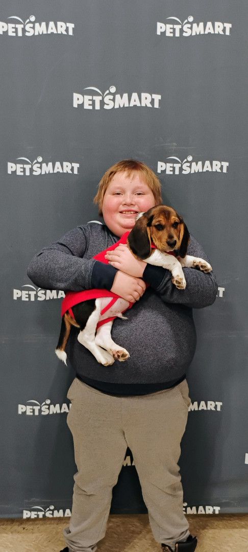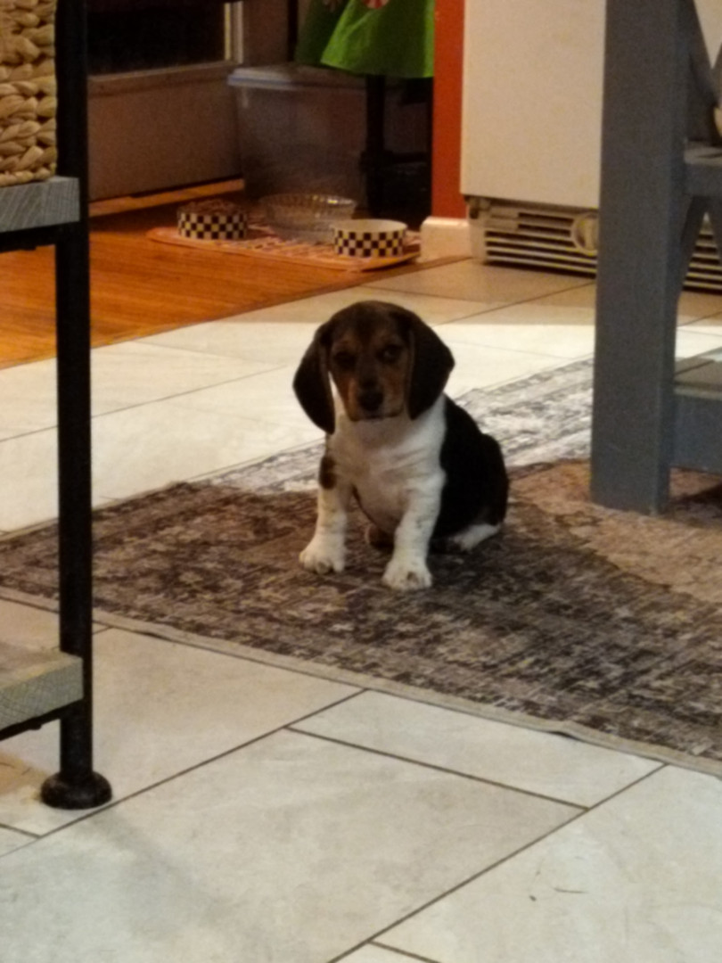 He is so sweet lovable and he is so playful. He is a little over 10 weeks old. He is a beagle hound mix. His mom was a rescue puppy.