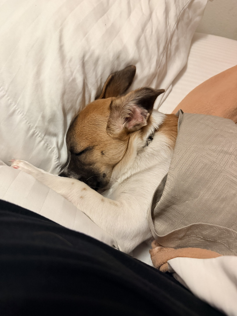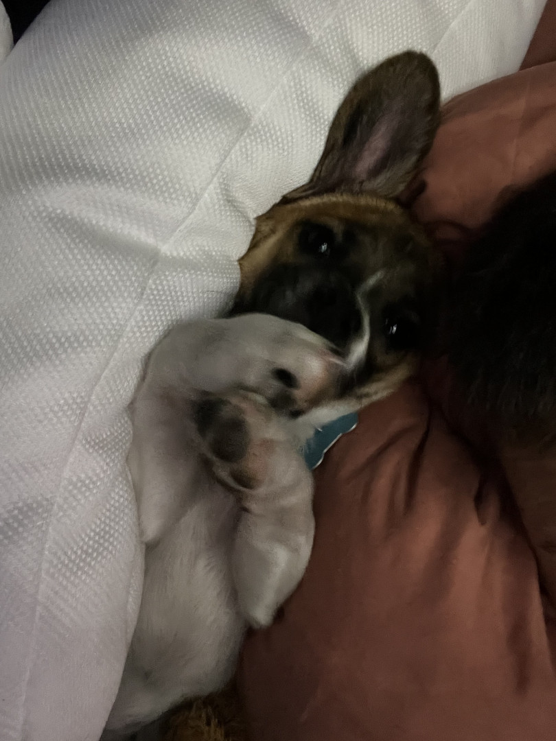 I think Colby should be Americas favorite, because everyone he comes in contact with is HIS favorite, he loves everyone, he loves his big sister Ginger who is a Dorky, he loves to cuddle, to play fetch, to chase his tail when he thinks no one is watching. He sleeps like a human, it’s like he understands like we do.